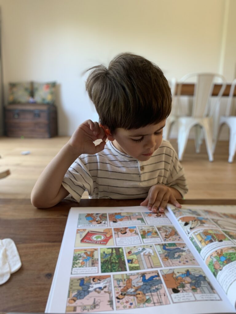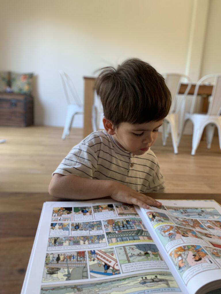 Il est resté 20 minutes comme ça à observer chaque page l’une après l’autre… je l’adore.