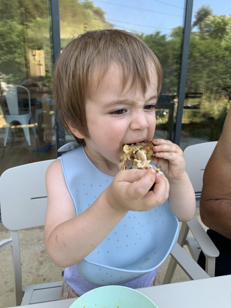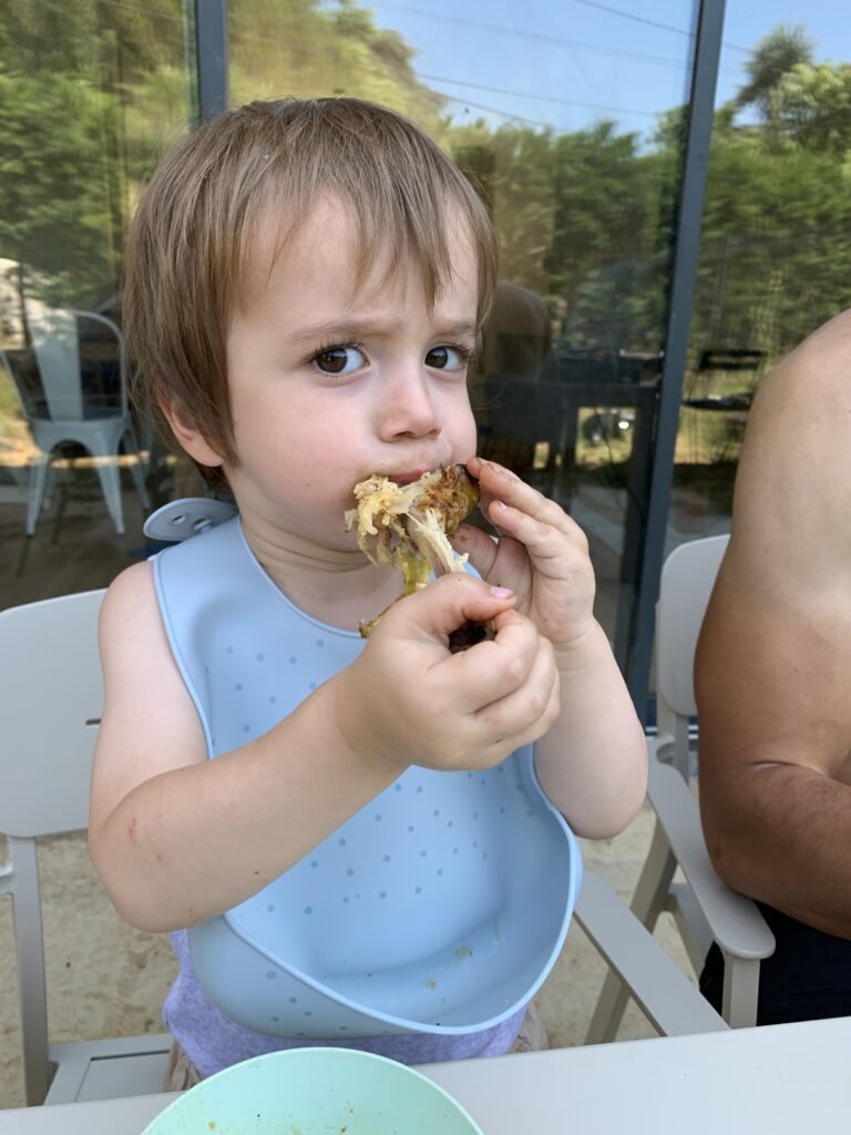 Sinon tout va bien : il mesure 91,5 cm, dans la moyenne. Pour le poids, il est un peu en dessous de la courbe : on le sait car il est très fin, et pourtant, qu’est-ce qu’il mange !! Monsieur est svelte comme son frère 🙂