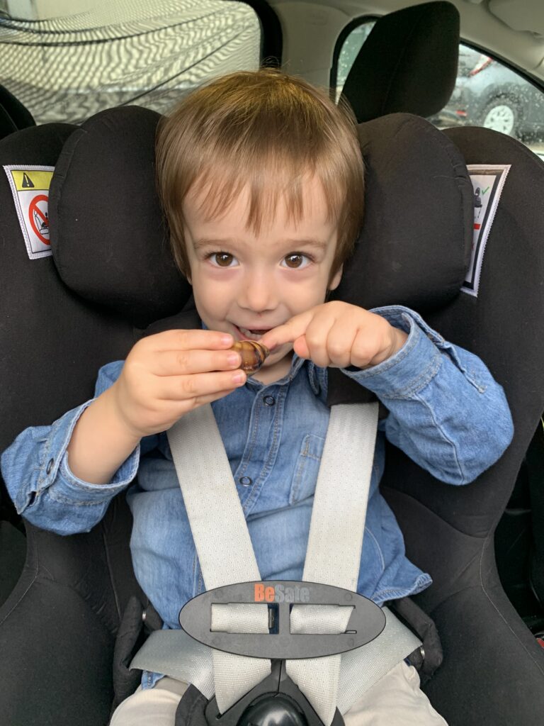 Escargots, araignées, fourmis, sauterelles…. et moustiques malheureusement (les pauvres jambes d’Armand) !