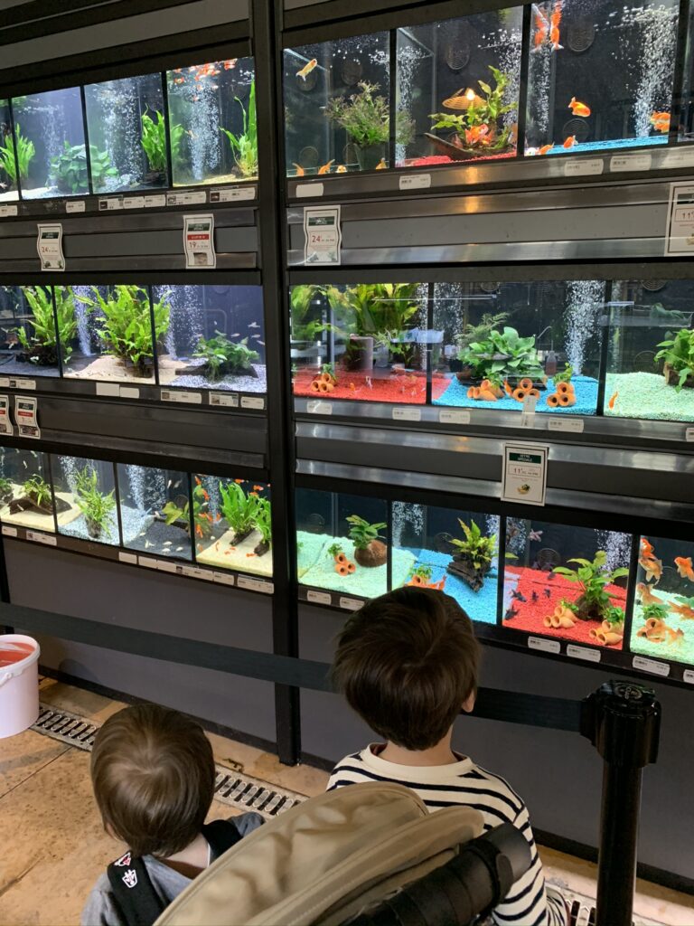Ou bien des sorties en endroit couvert, comme le rayon animalerie : toujours un succès !