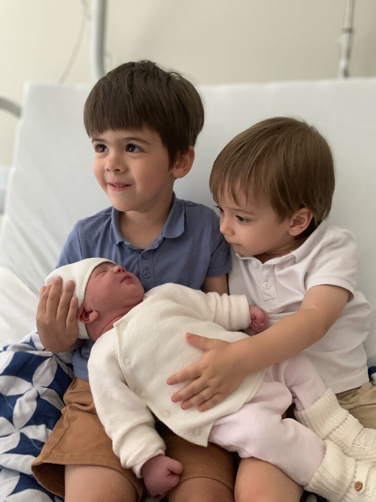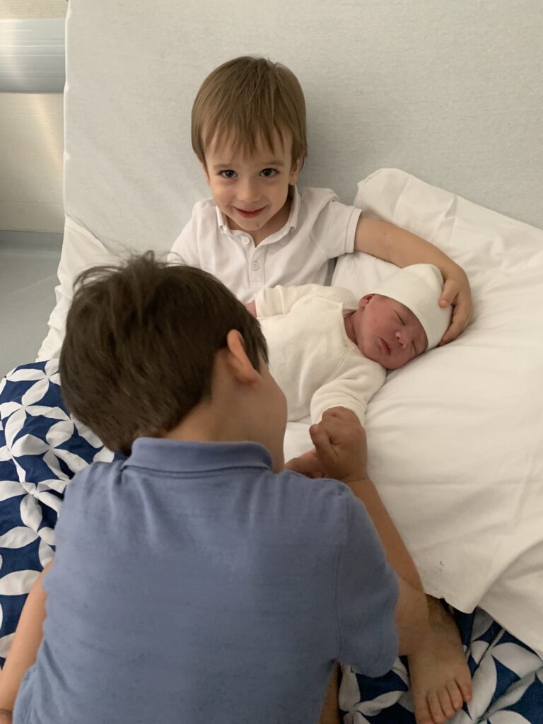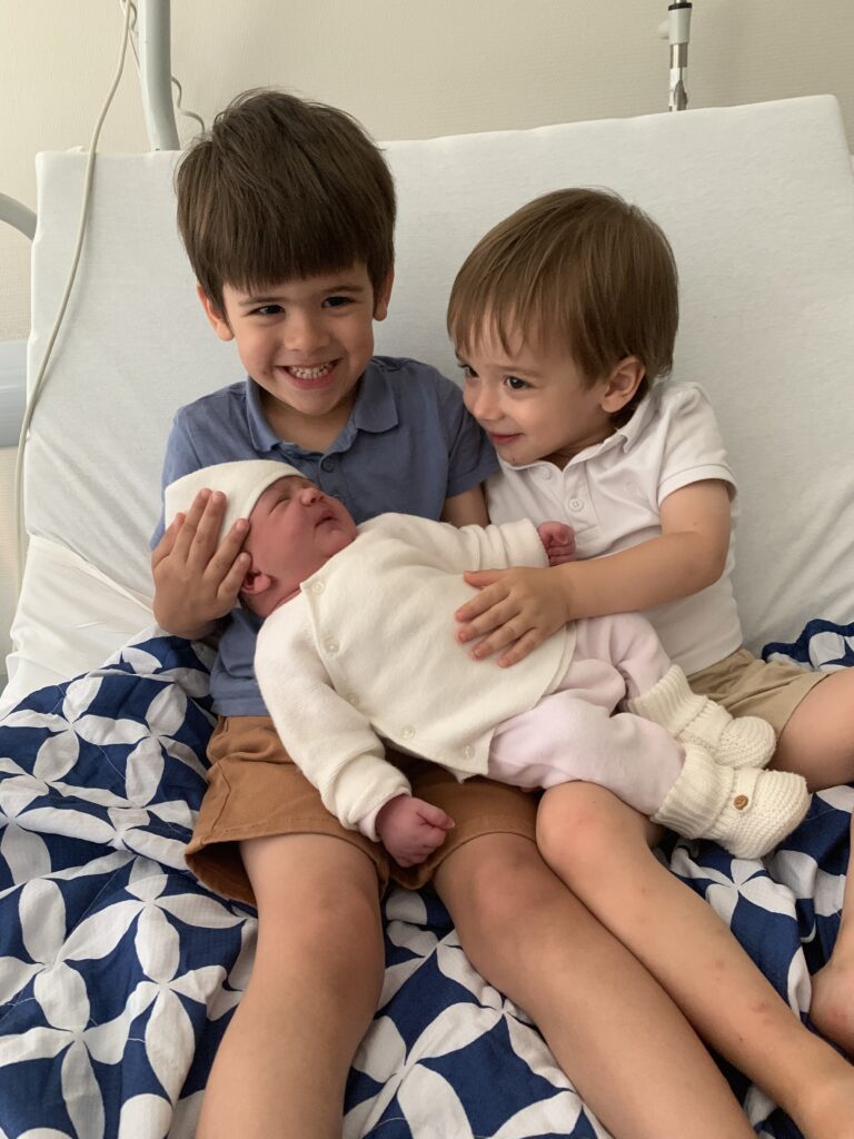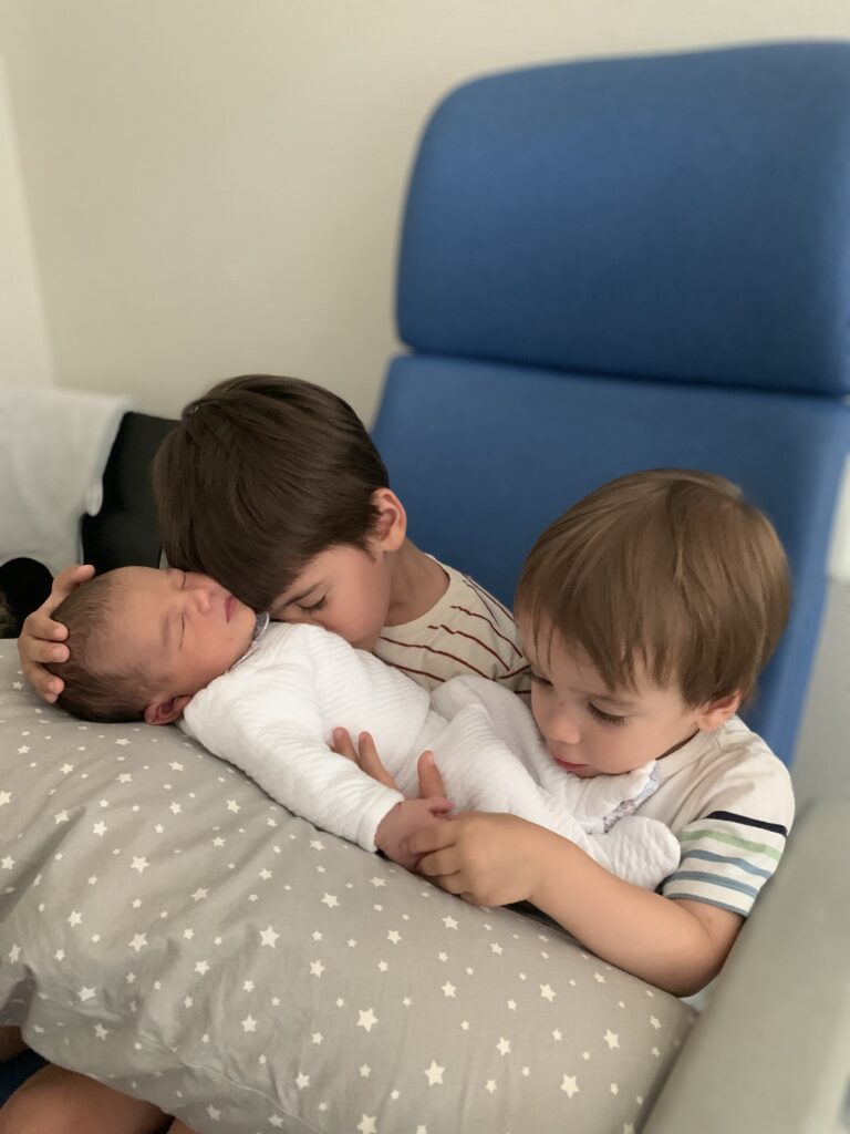 Nos deux garçons qui rencontrent leur petite sœur tant attendue… immense bonheur.