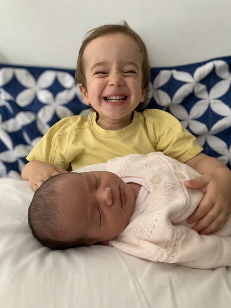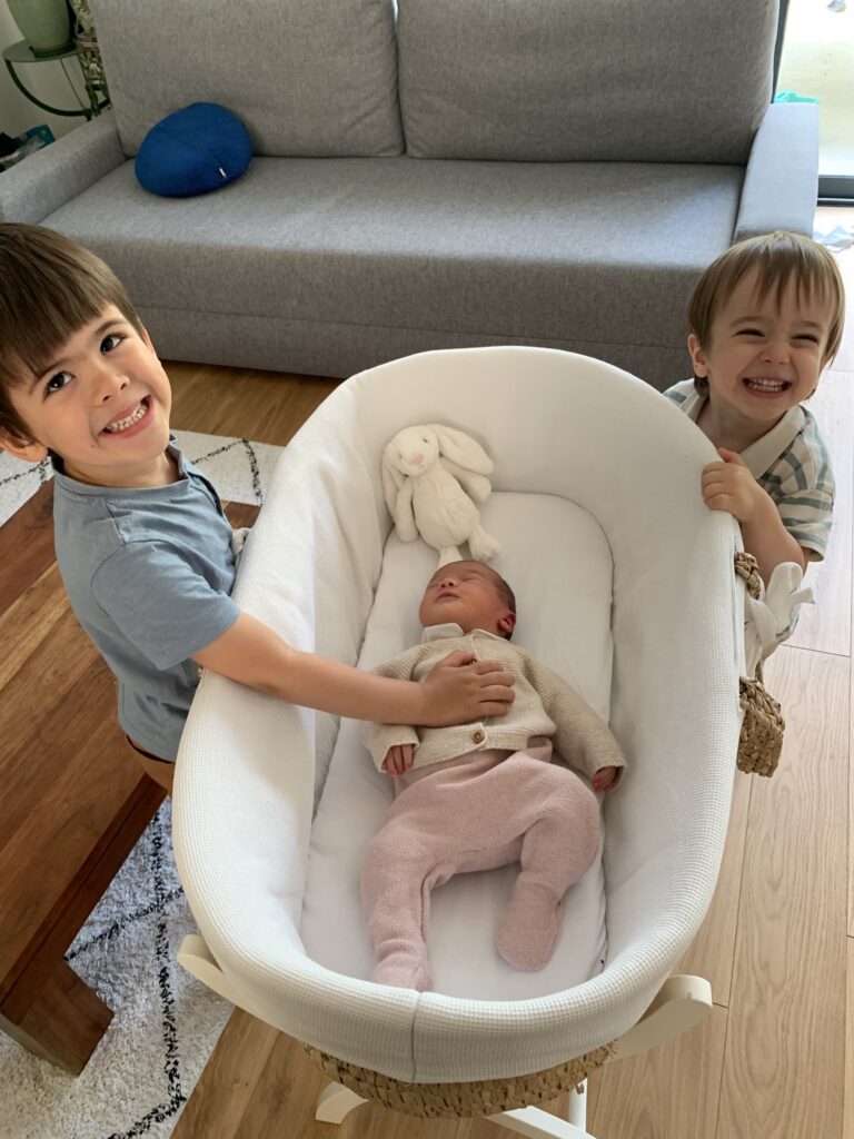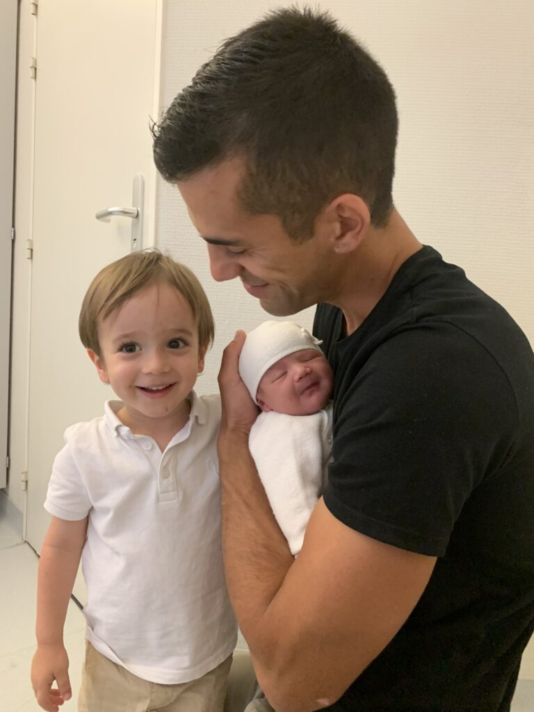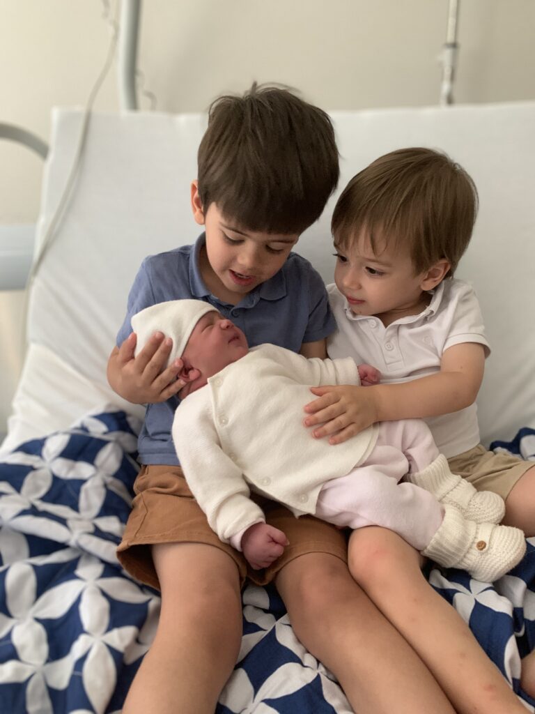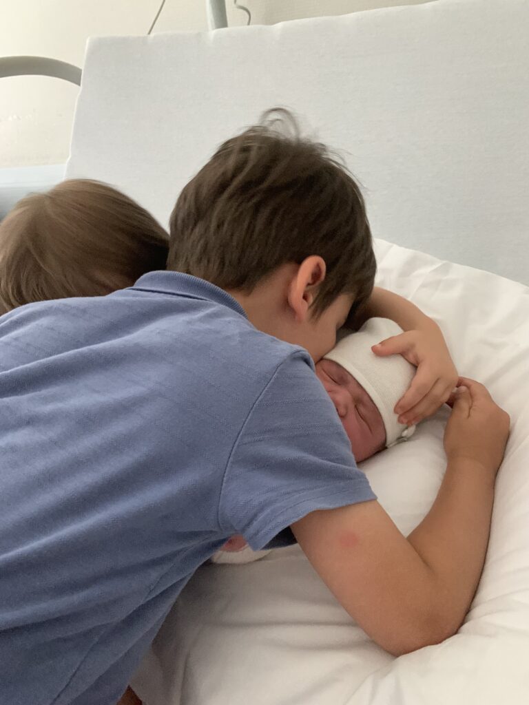 Nos deux garçons qui rencontrent leur petite sœur tant attendue… immense bonheur.
