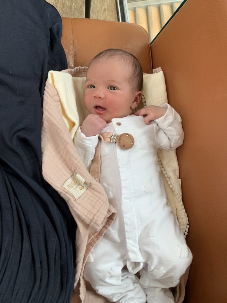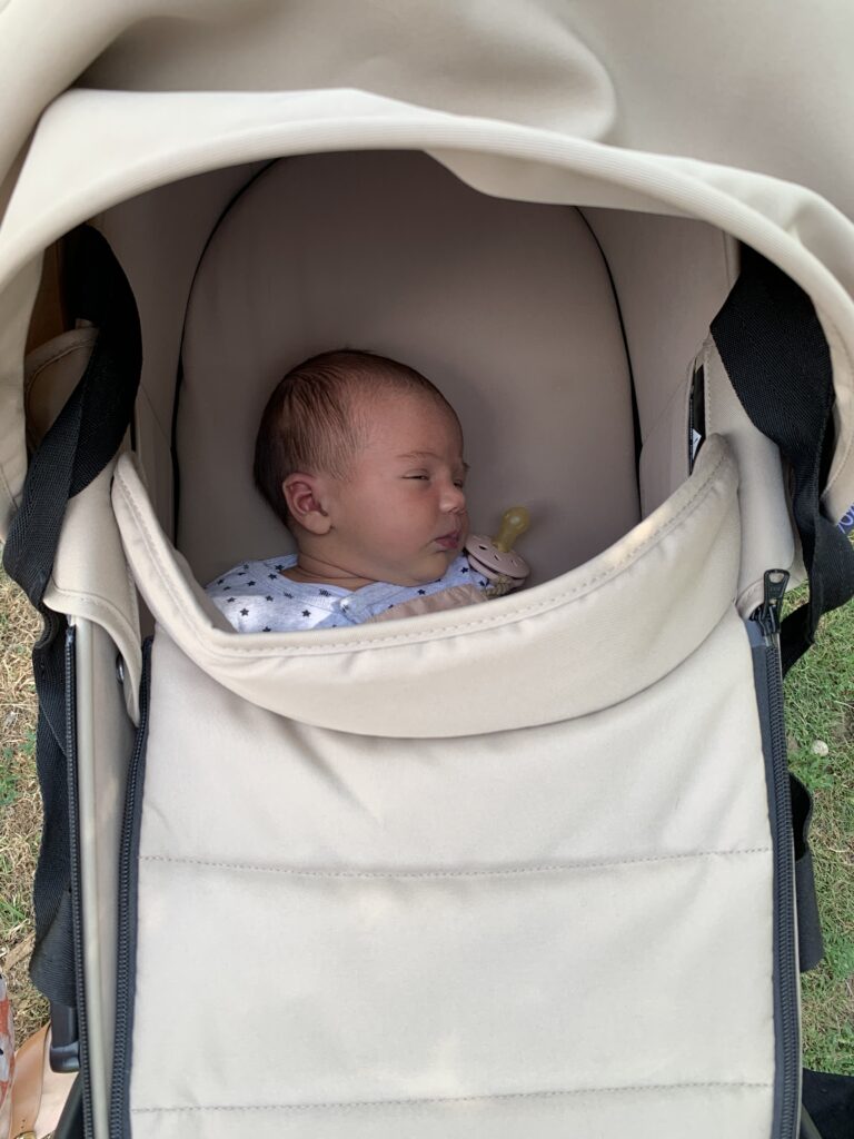 Jusqu’à présent Daphné est vraiment très calme pendant nos sorties… Que ce soit en voiture, en poussette ou en porte-bébé, elle dort. Puis elle mange, et se rendort ou reste tranquillement éveillée. Pourvu que ça dure !!