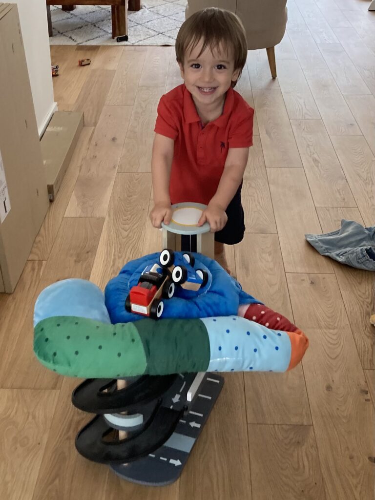 Il est vraiment fan de sa nouvelle peluche, lui qui n’a jamais voulu de doudou (malgré mes nombreuses tentatives) ! Il a immédiatement voulu mettre son escargot dans son lit et fait désormais la sieste avec, dort la nuit avec, le prend avec lui en voiture (c’est pratique il n’est pas du tout encombrant haha), lui fait des bisous avant de dormir… bref il l’adore et ne le quitte plus.