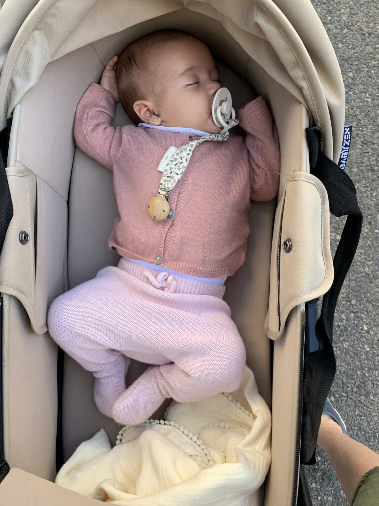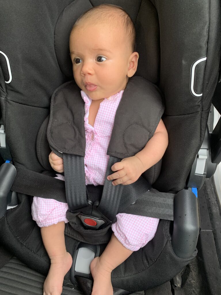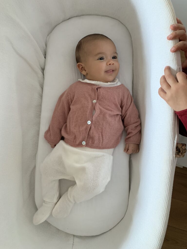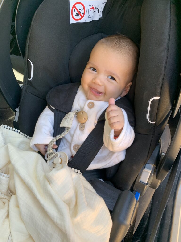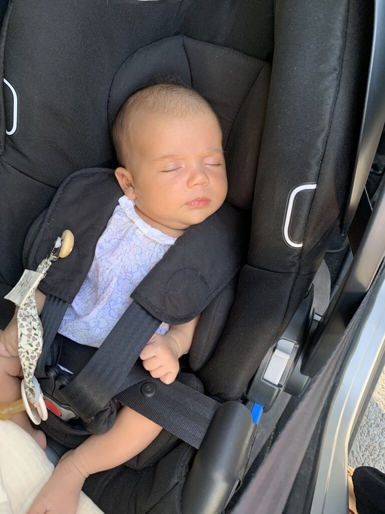 Je n’arrête pas de l’installer et de la désinstaller de son siège auto et elle ne dit rien… un ange.