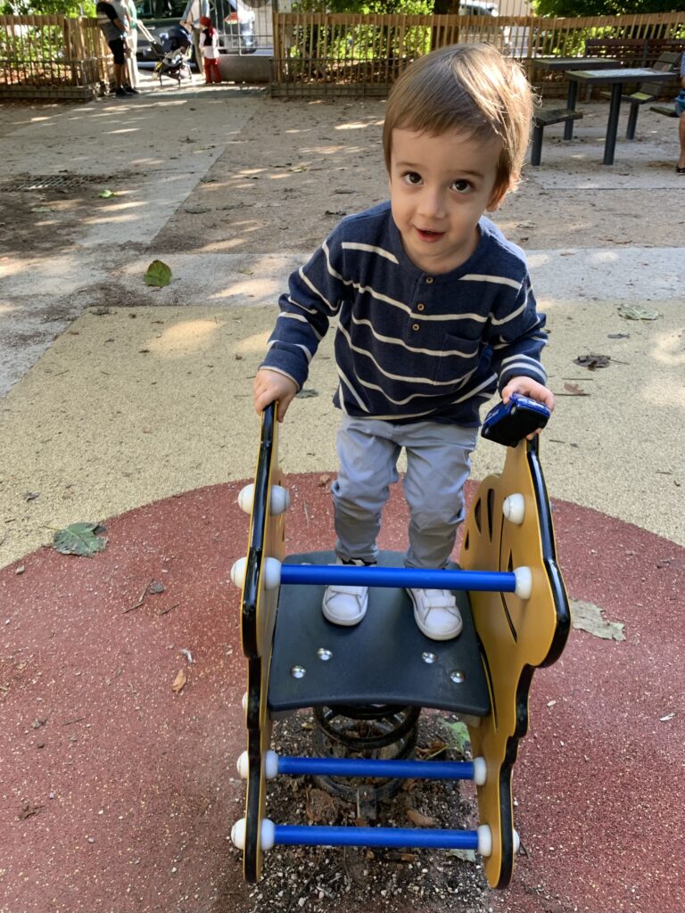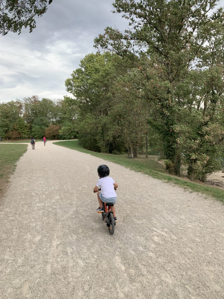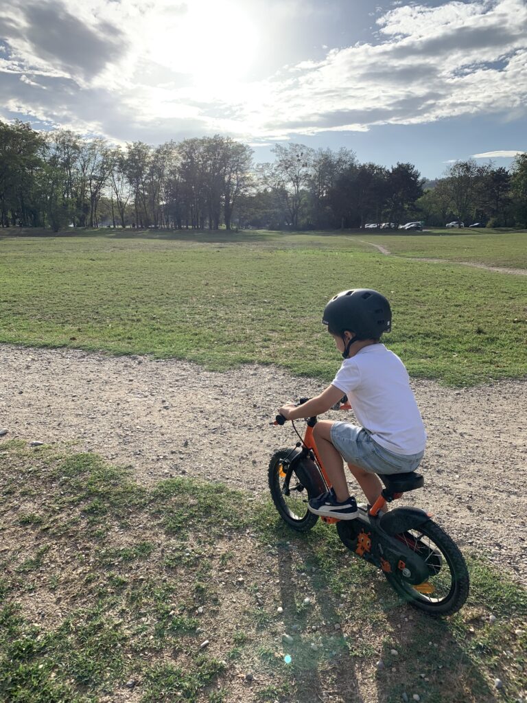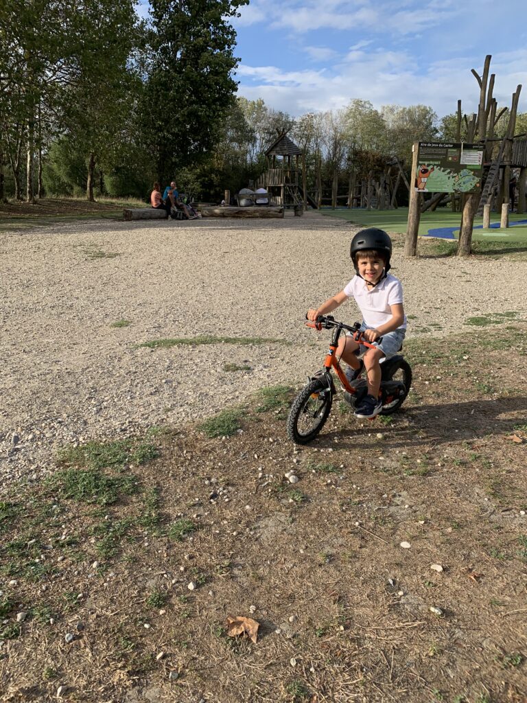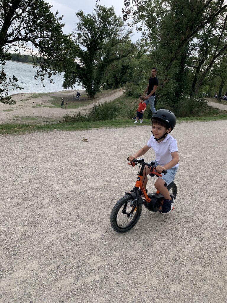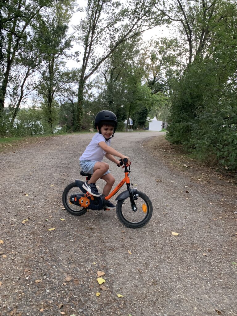 Il y a une semaine, Hugo a enlevé les petites roues de son vélo !! Il a juste eu besoin d’un peu d’aide pour démarrer et il était ensuite comme un poisson dans l’eau.
