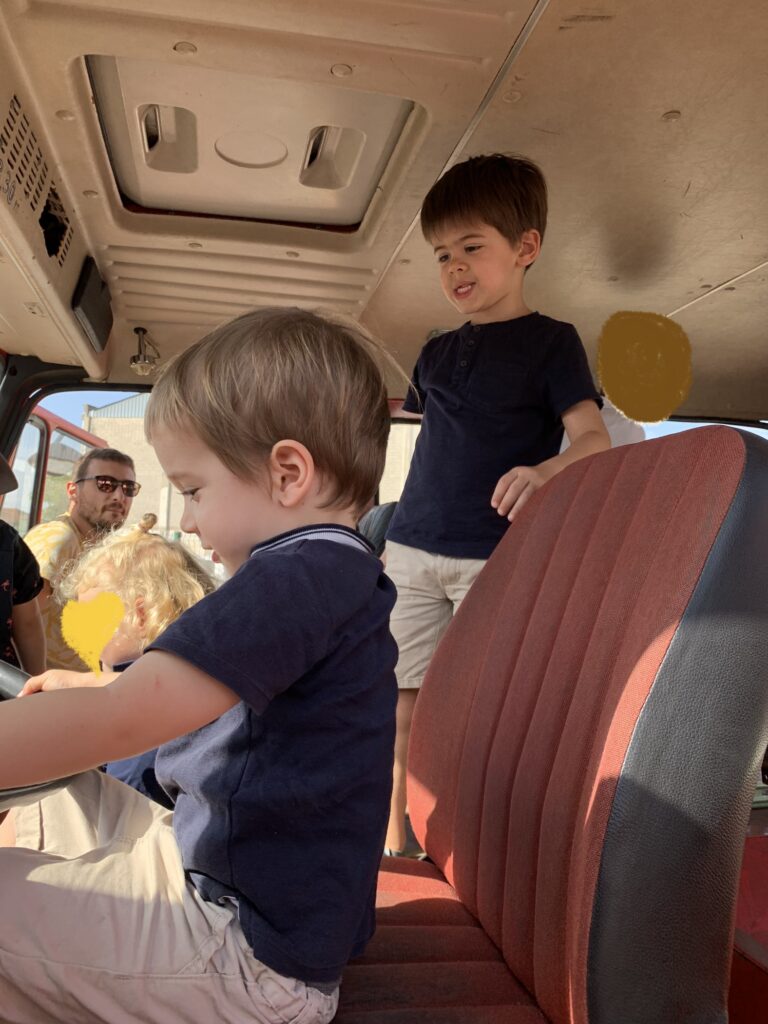 Cette année, visite de la réserve du musée des Sapeurs-Pompiers : des centaines et des centaines de camions à admirer, certains très anciens, et la chance de pouvoir monter à bord d’un d’entre eux !