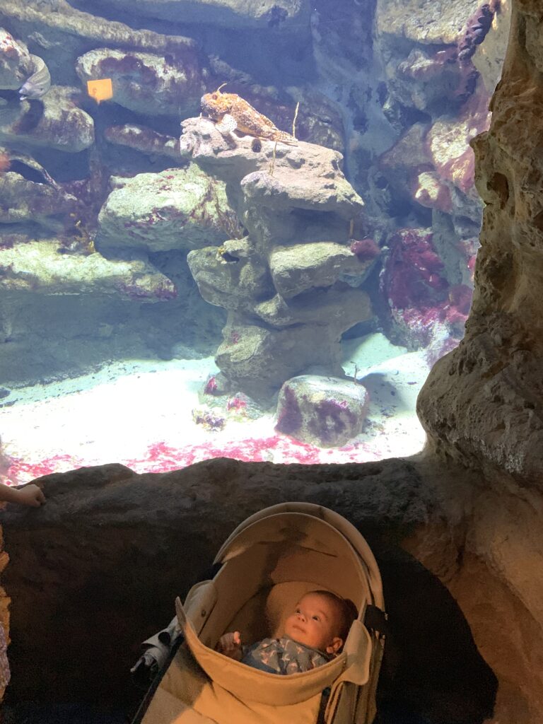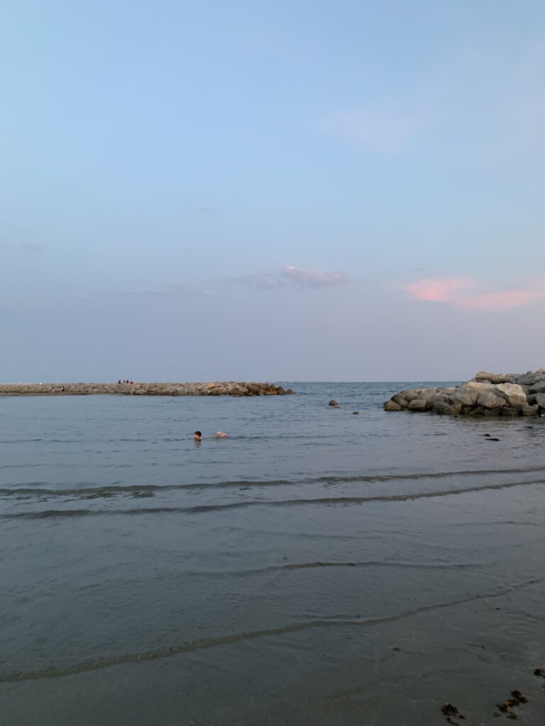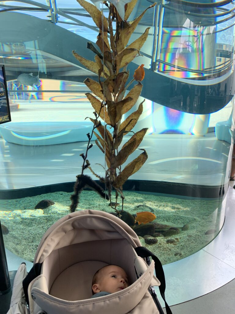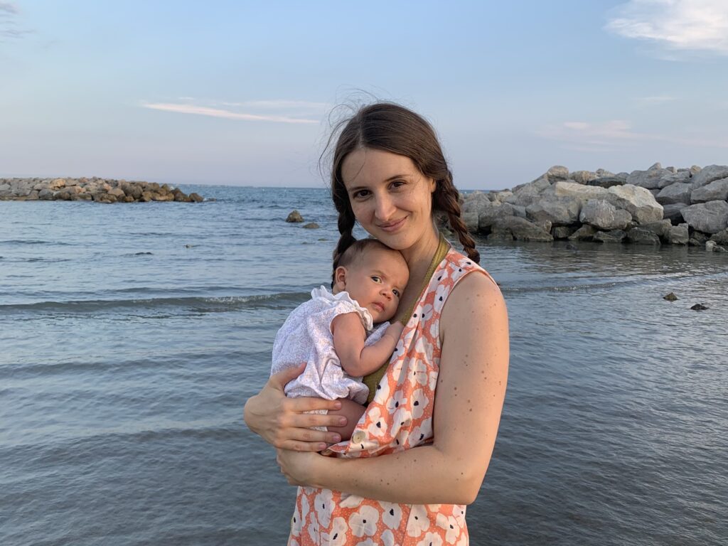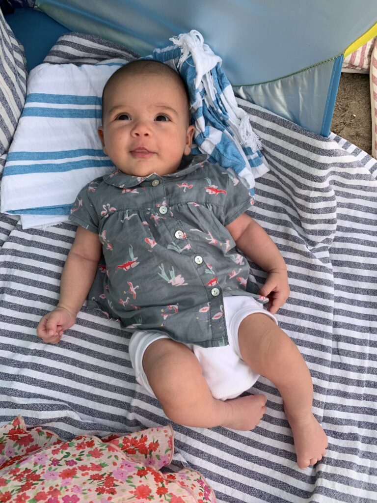 Première trempette dans la mer pour notre petit bébé ! Et elle est restée toute calme sans rien dire… un amour.
