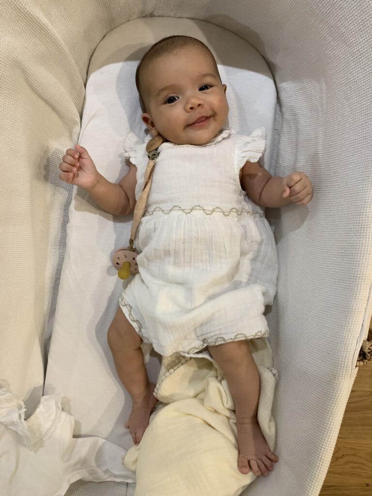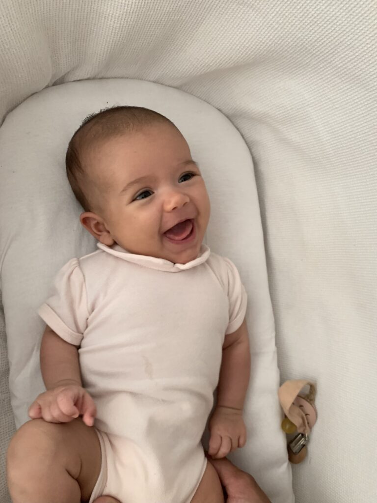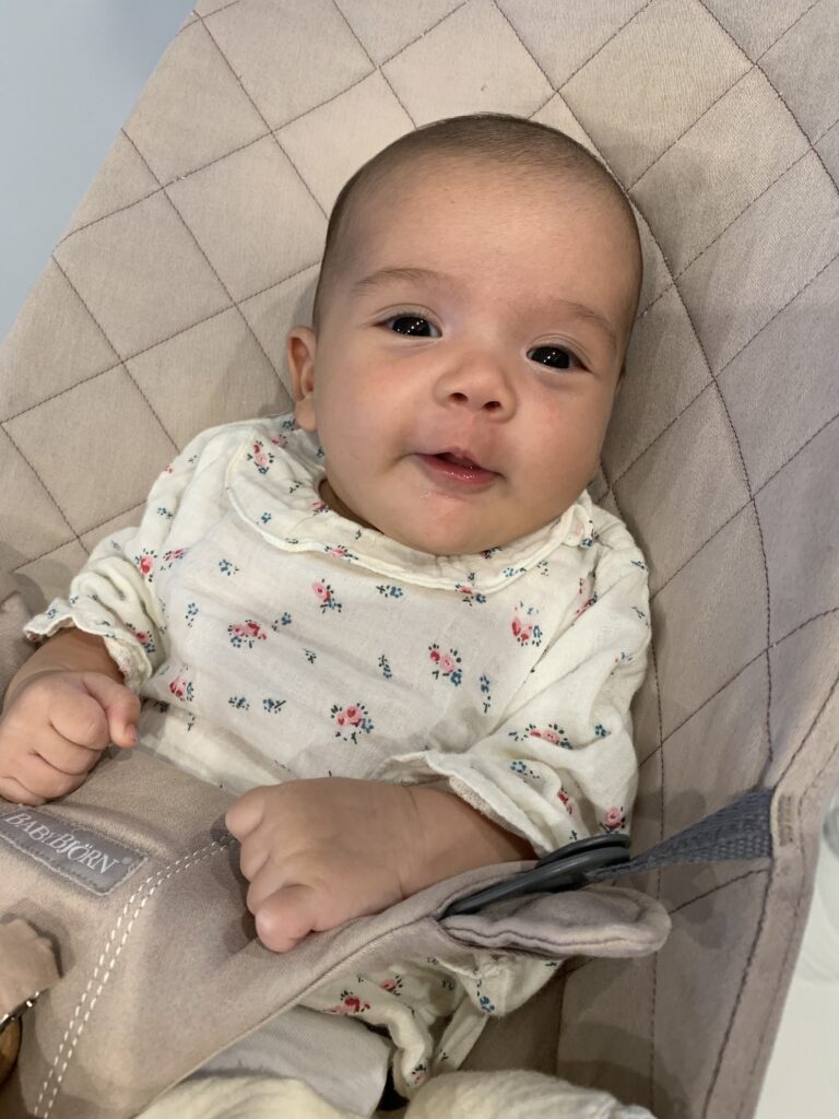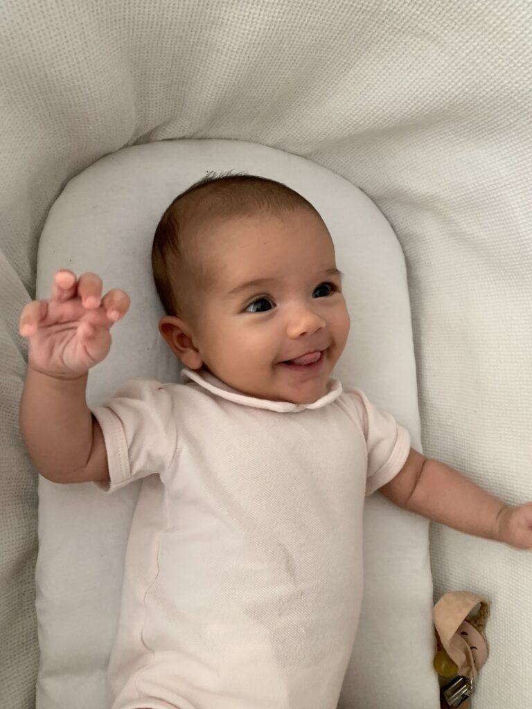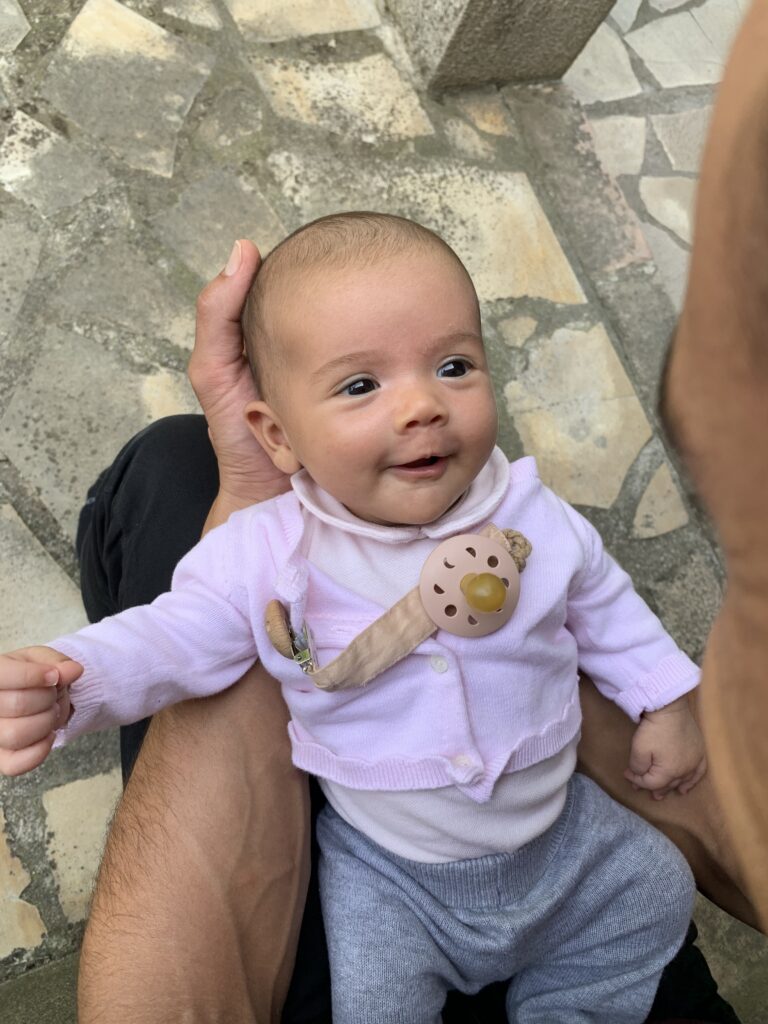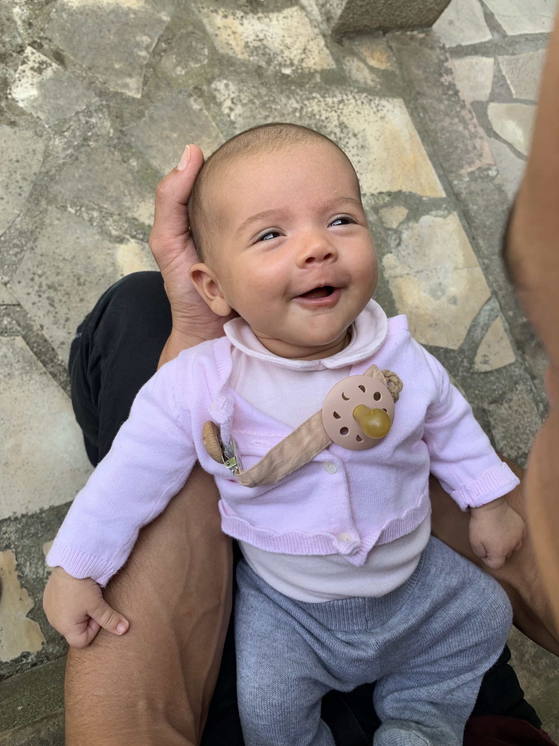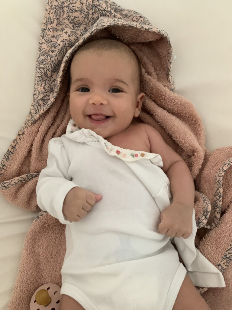 Ça a commencé tout doucement pendant les vacances, et depuis notre retour c’est une explosion de sourires et de gazouillis ! On est fous d’elle !
