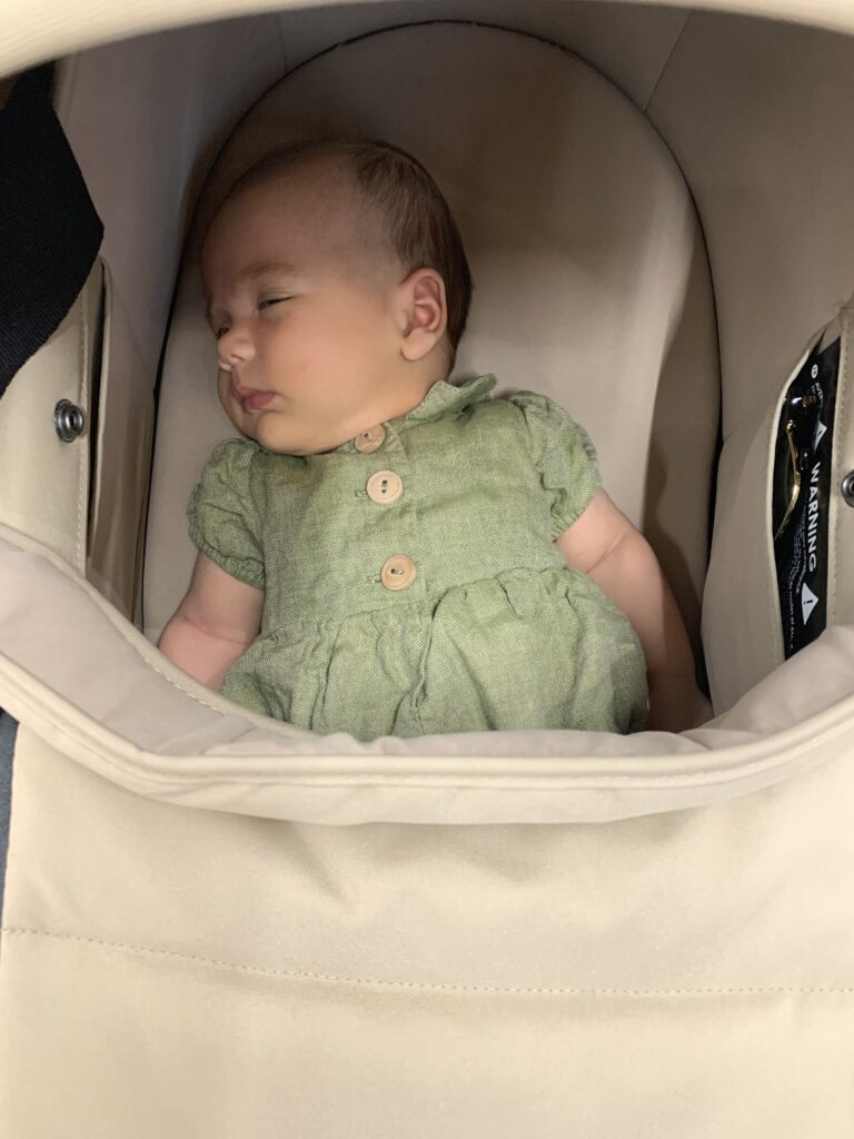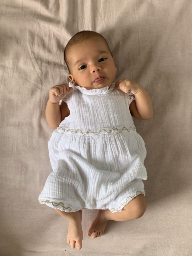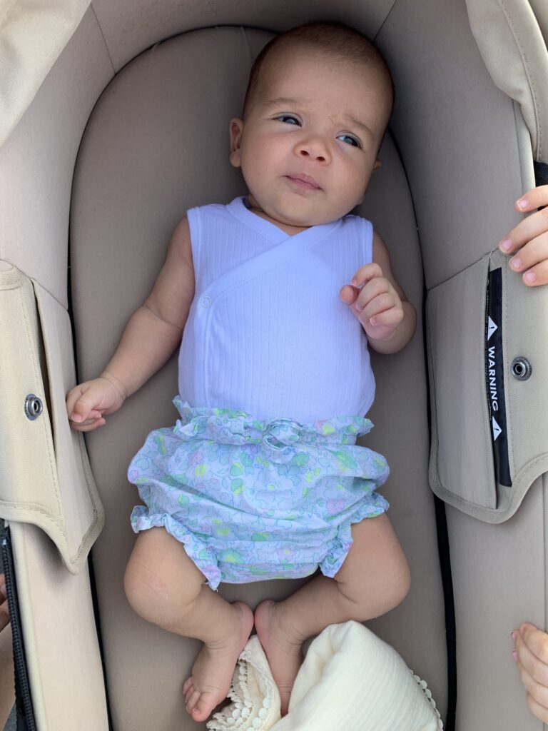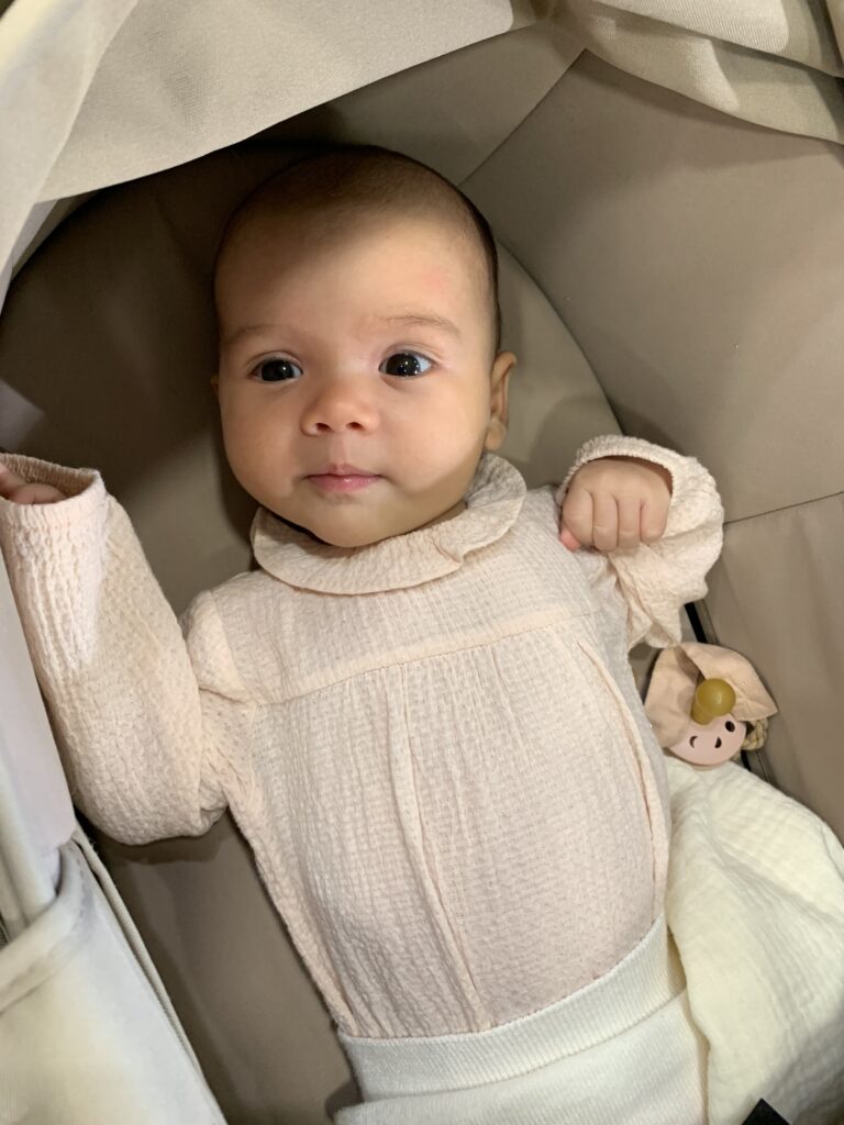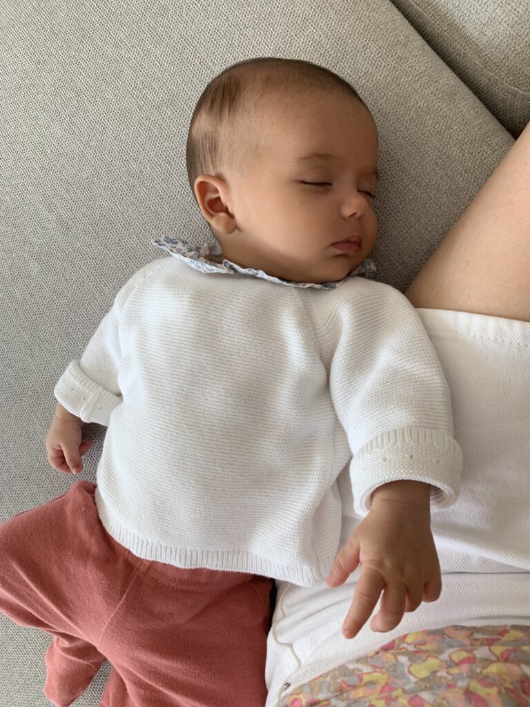 Comme je le dis à tout le monde : Daphné est vraiment un gentil bébé. Elle est très sage et calme, elle ne me réveille qu’une seule fois la nuit voire deux maximum, son rythme est très bien calé depuis quasiment le début, je l’emmène évidemment avec moi pour tous nos trajets quotidiens à l’école et elle ne dit rien… Et pour couronner le tout, elle est magnifique et nous fait plein de sourires et de « areu » haha ! La perfection 🙂