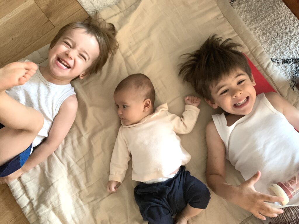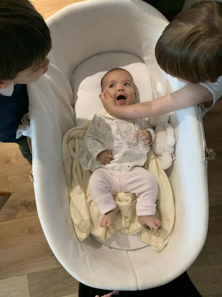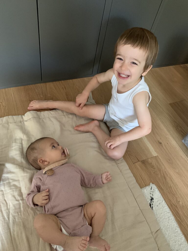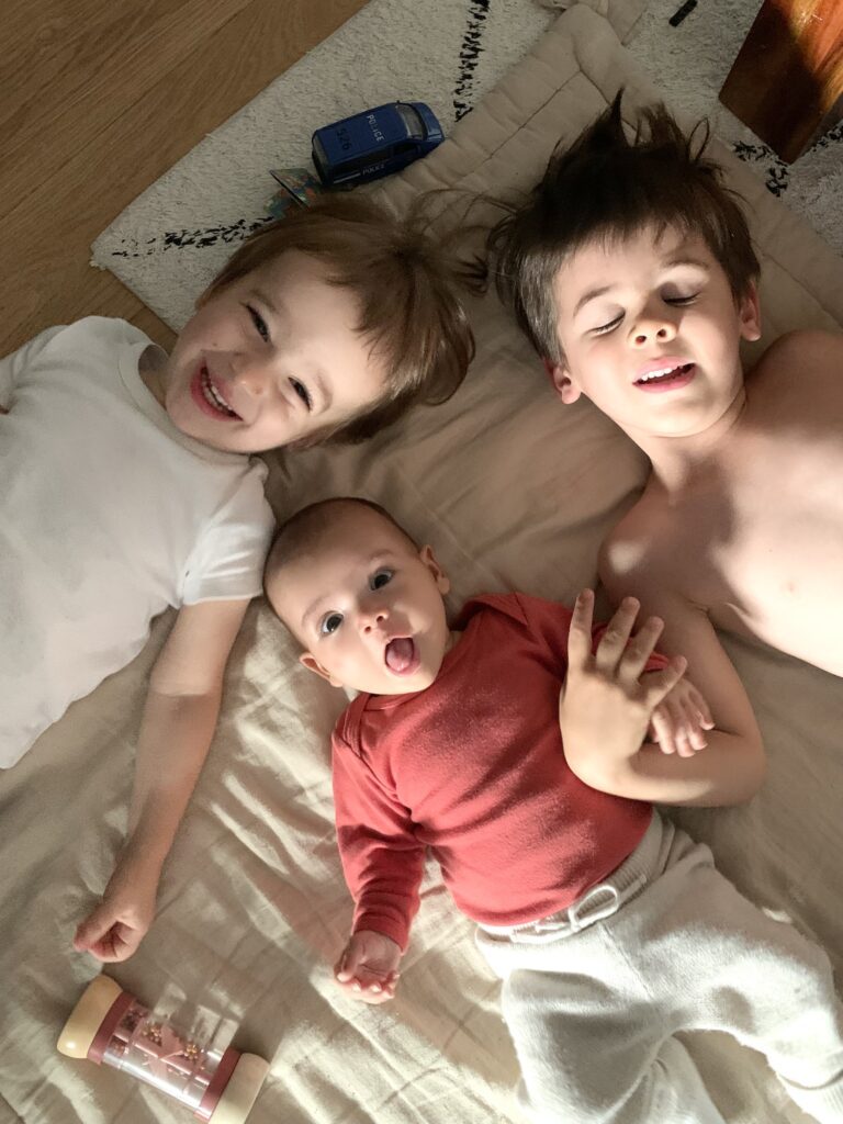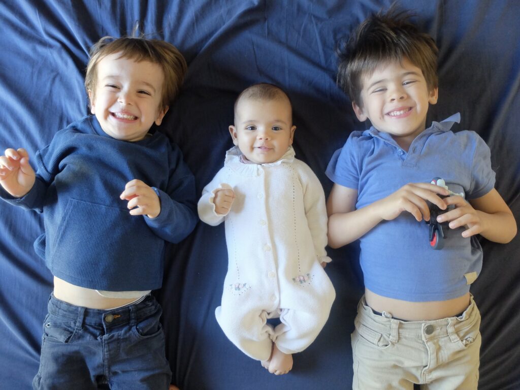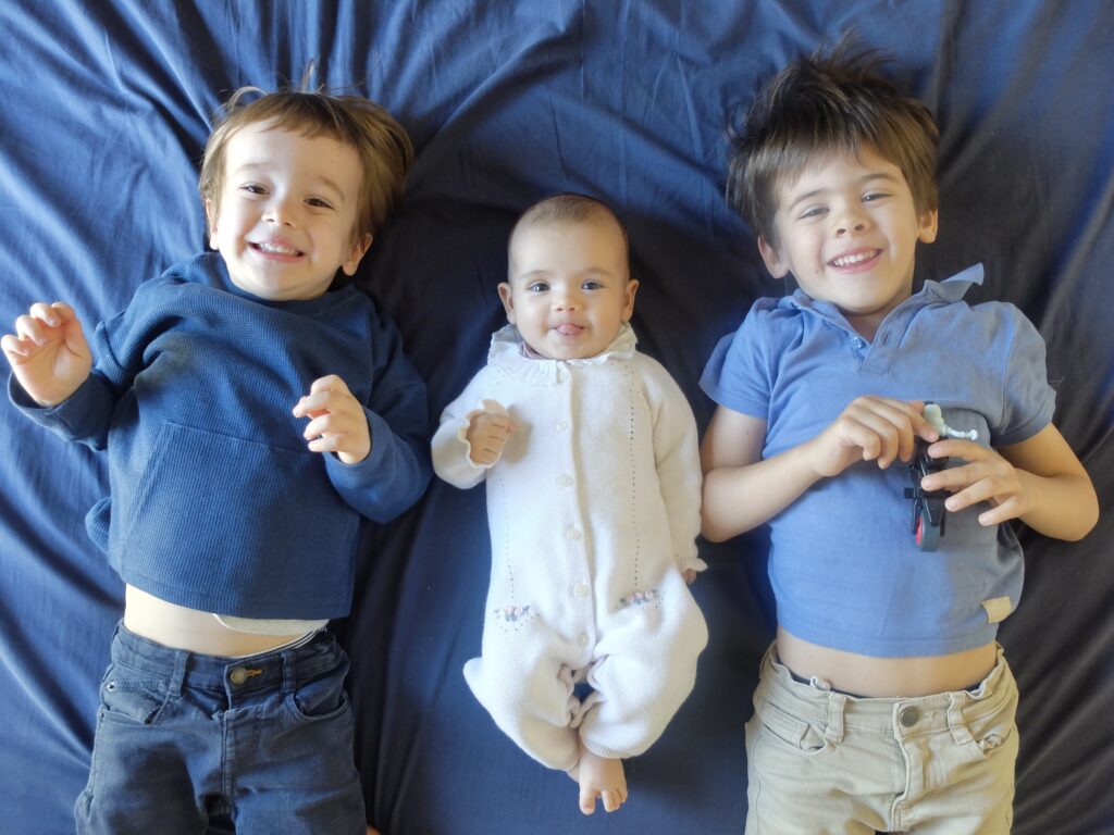 Et puis elle aime aussi toujours autant la tétine, les bisous et ses frères bien sûr. Ce qu’elle n’aime pas trop : le bain !