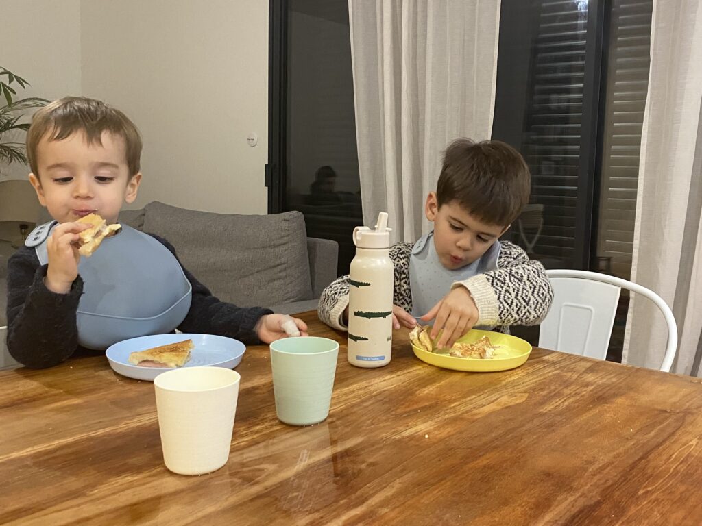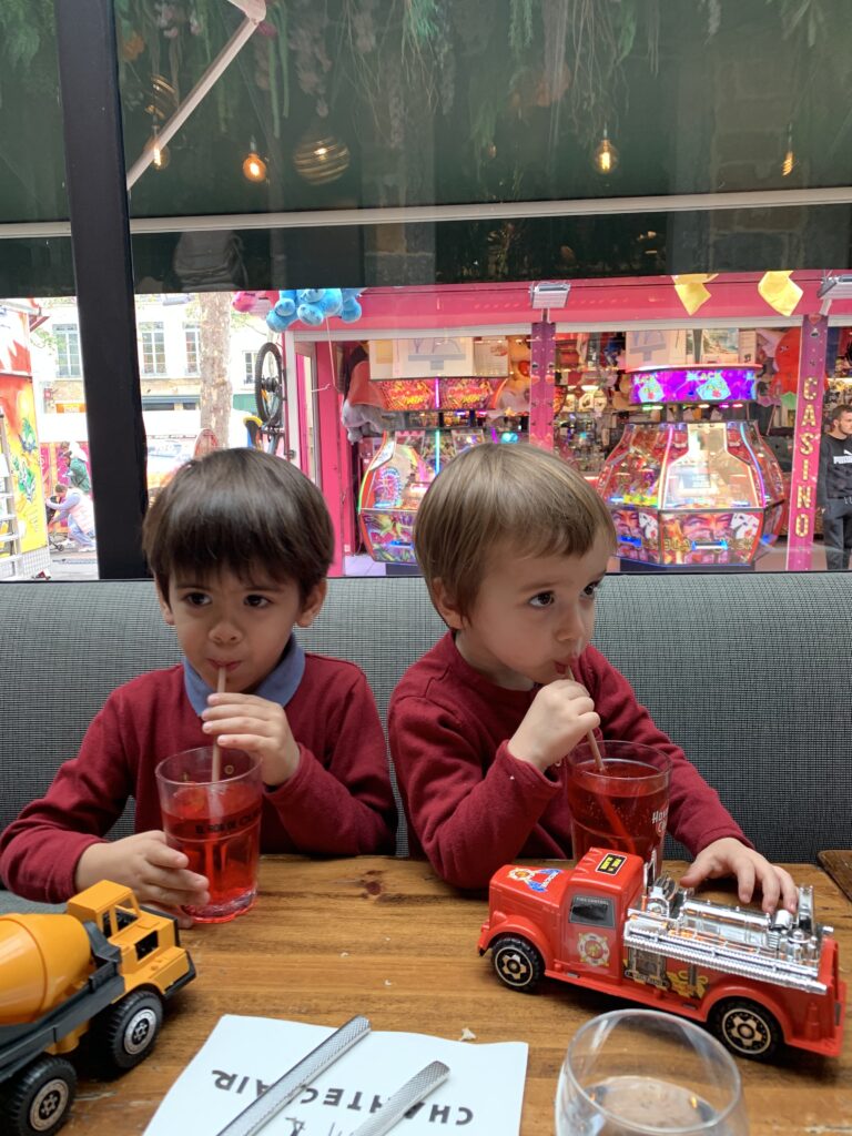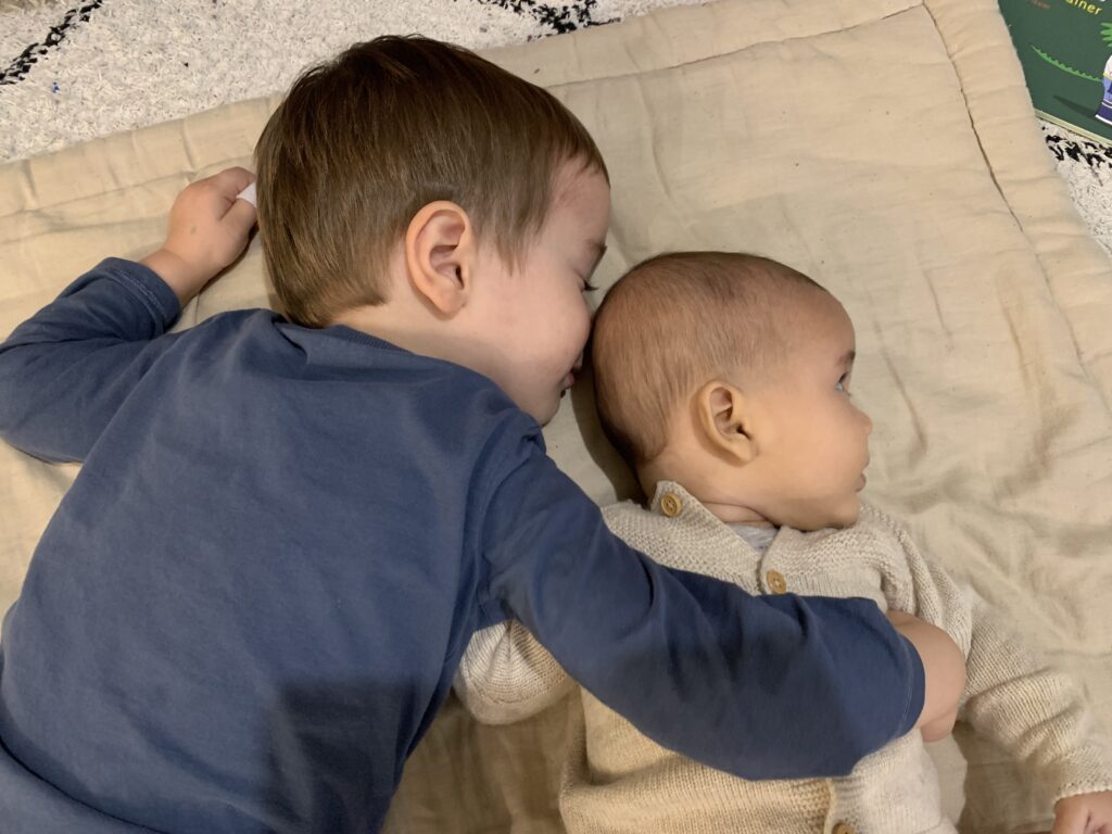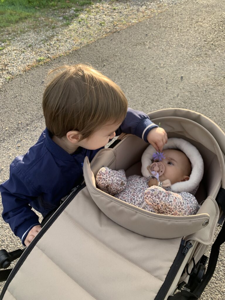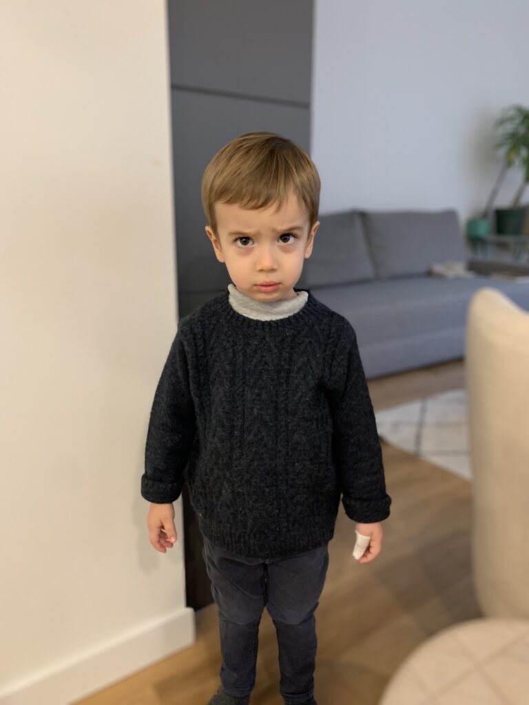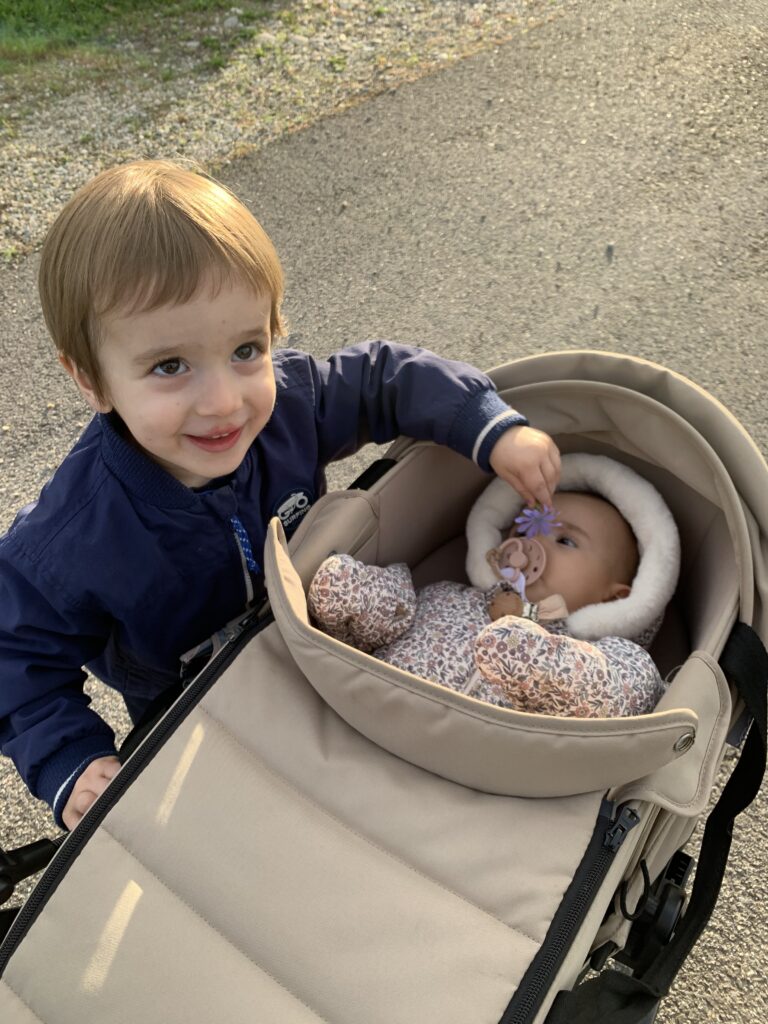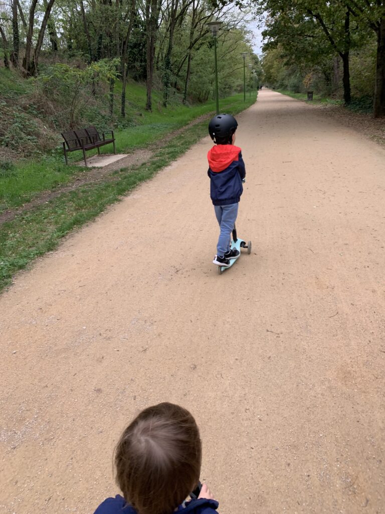 Un peu l’impression d’avoir un ado à la maison parfois, pas mal de provocations de sa part et de répondant !! Il faut s’accrocher ! Il se filme et se prend en photo avec mon téléphone, n’a pas du tout peur de la vitesse (en trottinette haha, je ne préfère même pas penser à la voiture un jour), ne veut manger que des pâtes et du sucre, me hurle dessus… la liste est longue. Il grandit tellement vite. Est-ce que j’avais déjà précisé qu’il chausse du 30 ?? Ça fait déjà un bon moment et ça m’avait fait un petit choc.