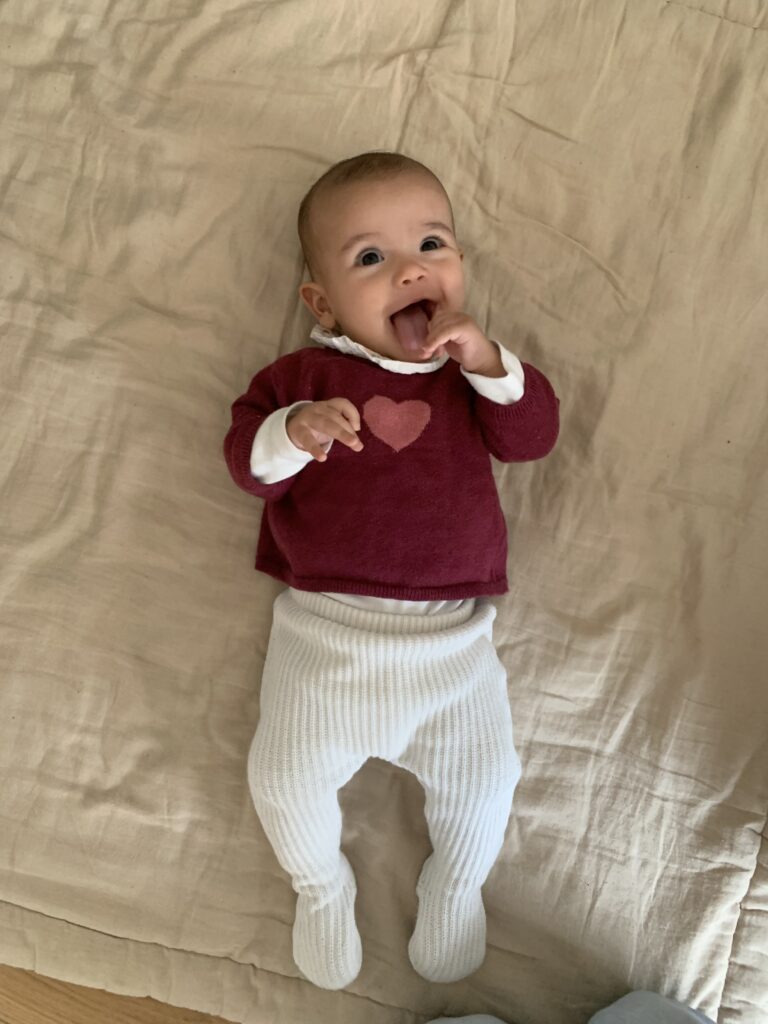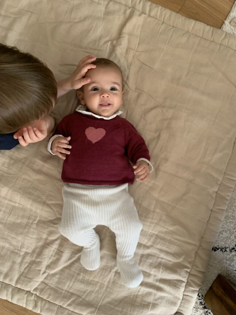 Avant les vacances, la situation avec Daphné a vraiment atteint un pic. Elle avait beaucoup de mal à s’alimenter et à dormir, c’était une période très éprouvante. Depuis, j’ai couru un peu partout pour des rendez-vous : médecins généralistes, pédiatres, les urgences, gastro-pédiatre… Il est difficile de réellement savoir ce qu’il se passe mais c’est plutôt la piste de l’allergie aux protéines de lait de vache qui est retenue pour le moment, donc je les ai purement supprimées de mon alimentation depuis 3 semaines. Ça va mieux, même si ce n’est toujours pas comme avant. Parfois c’est de nouveau compliqué et je désespère. Mais je pense que le pire est derrière nous !