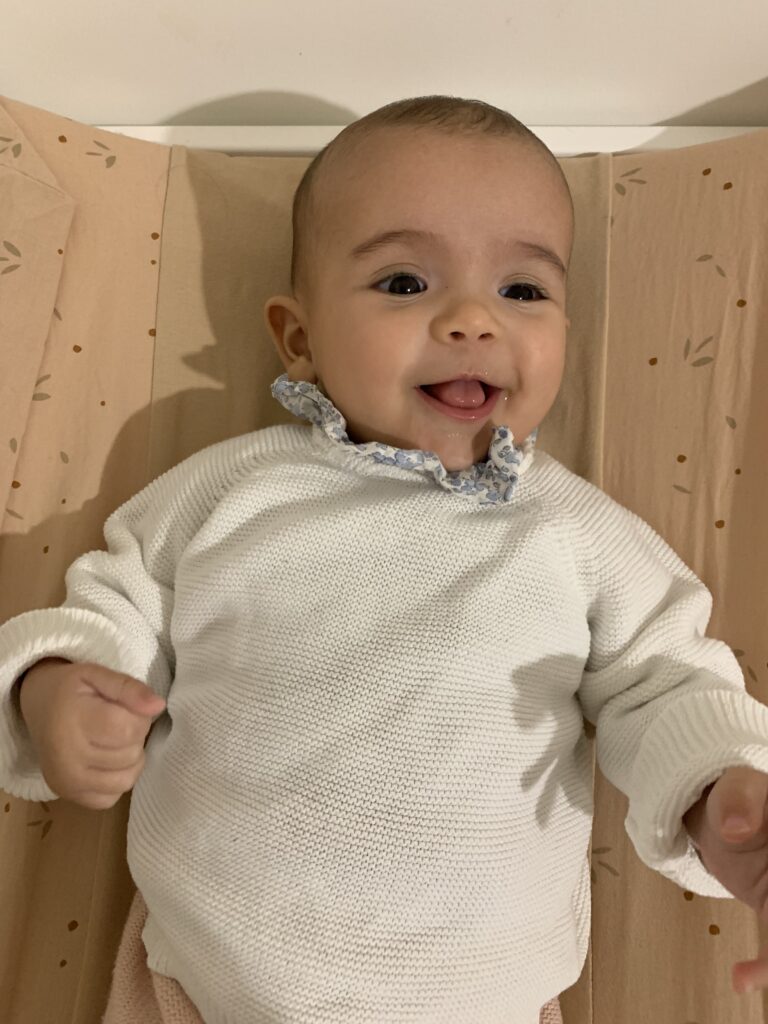 Il y a quelques jours elle a commencé à rigoler ! C’est encore léger mais on adore 🙂 Et toujours ces sourires…