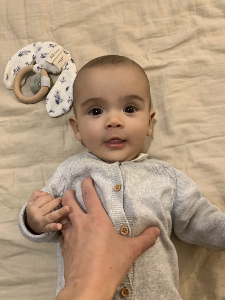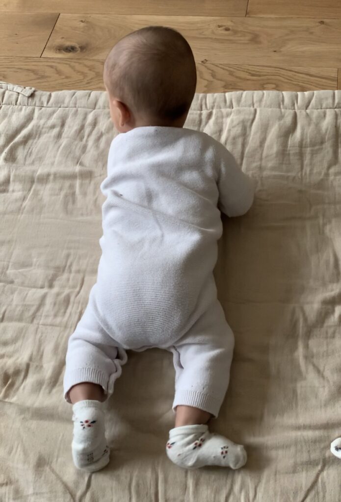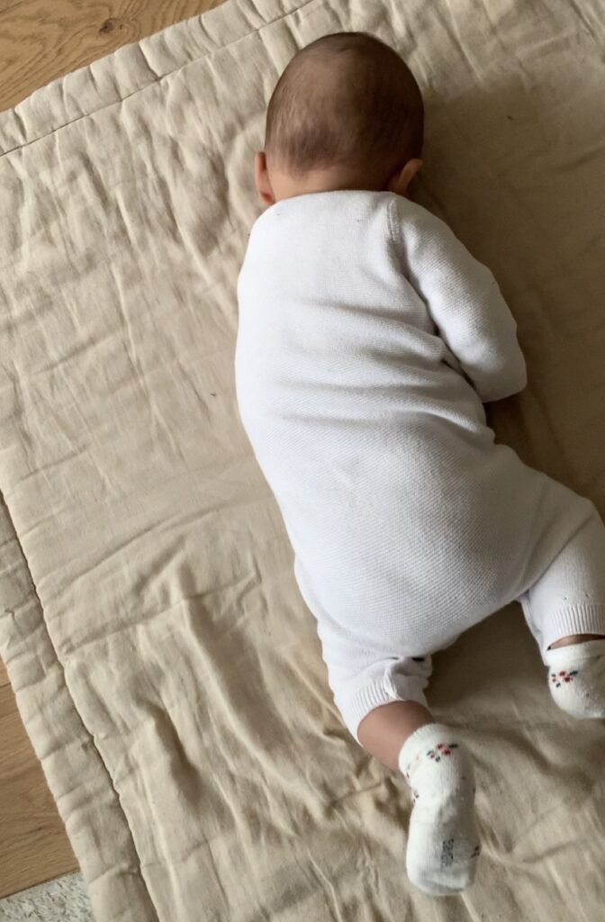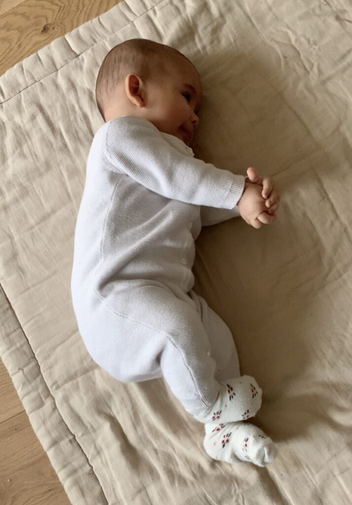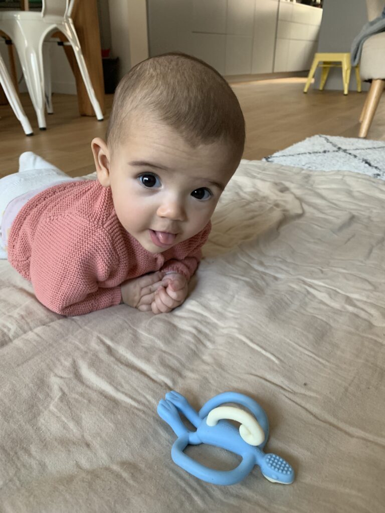 Le 20 novembre dernier (4 mois et 1 semaine), Daphné s’est retournée toute seule sur le ventre pour la première fois 🙂