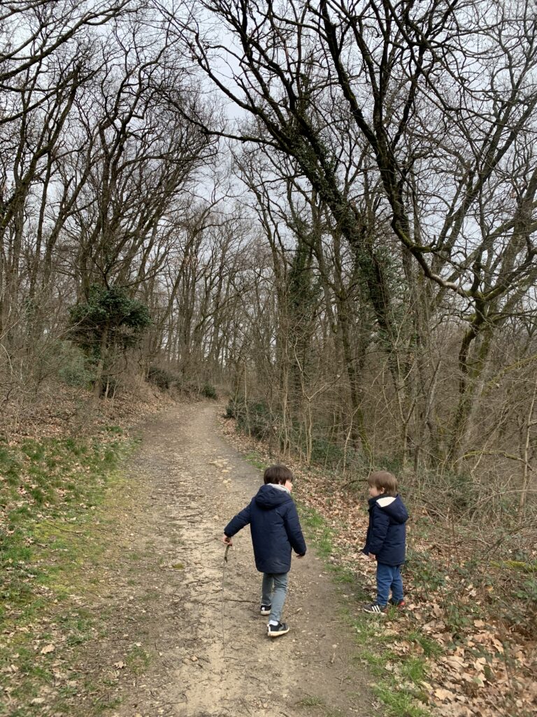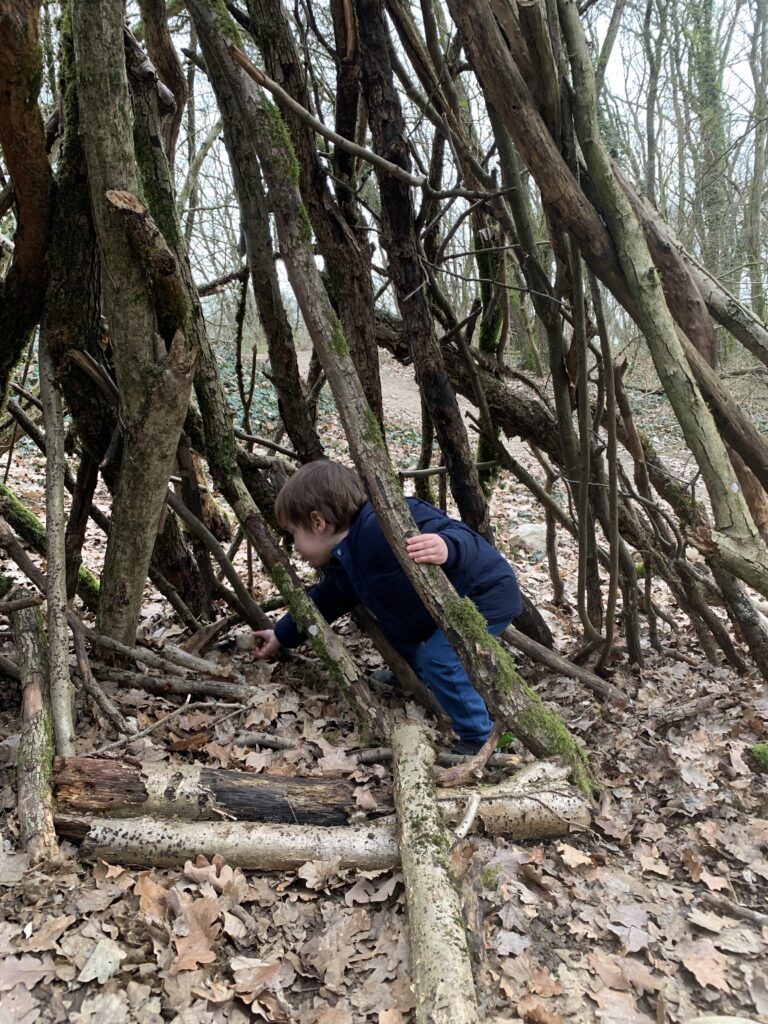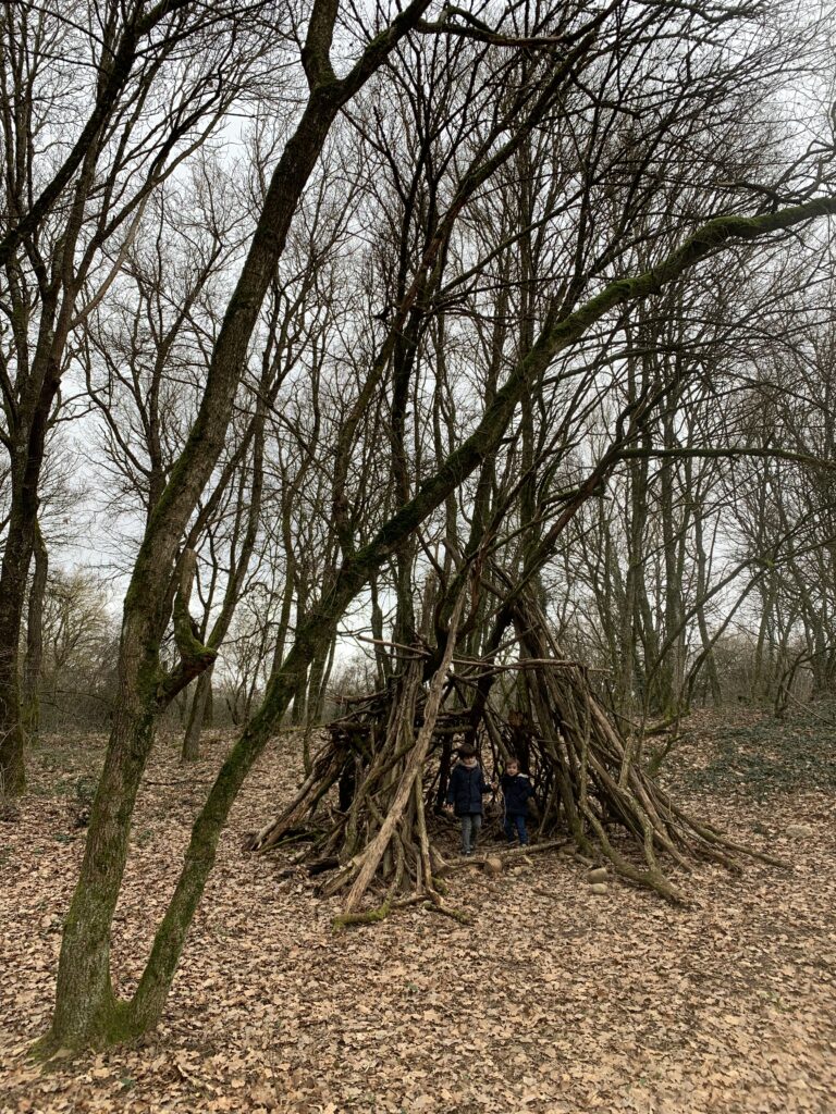 Dans le bois derrière chez nous, les garçons aiment aller voir la cabane !