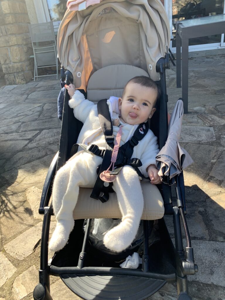 Dans sa poussette, elle est plutôt calme mais impossible de l’endormir à mon grand désespoir. Je suis donc un peu bloquée par ses siestes à la maison…