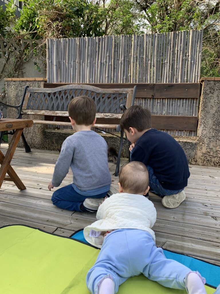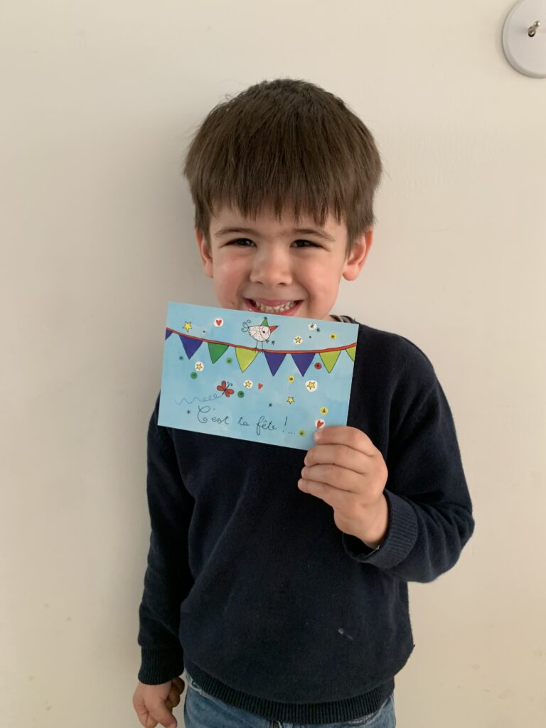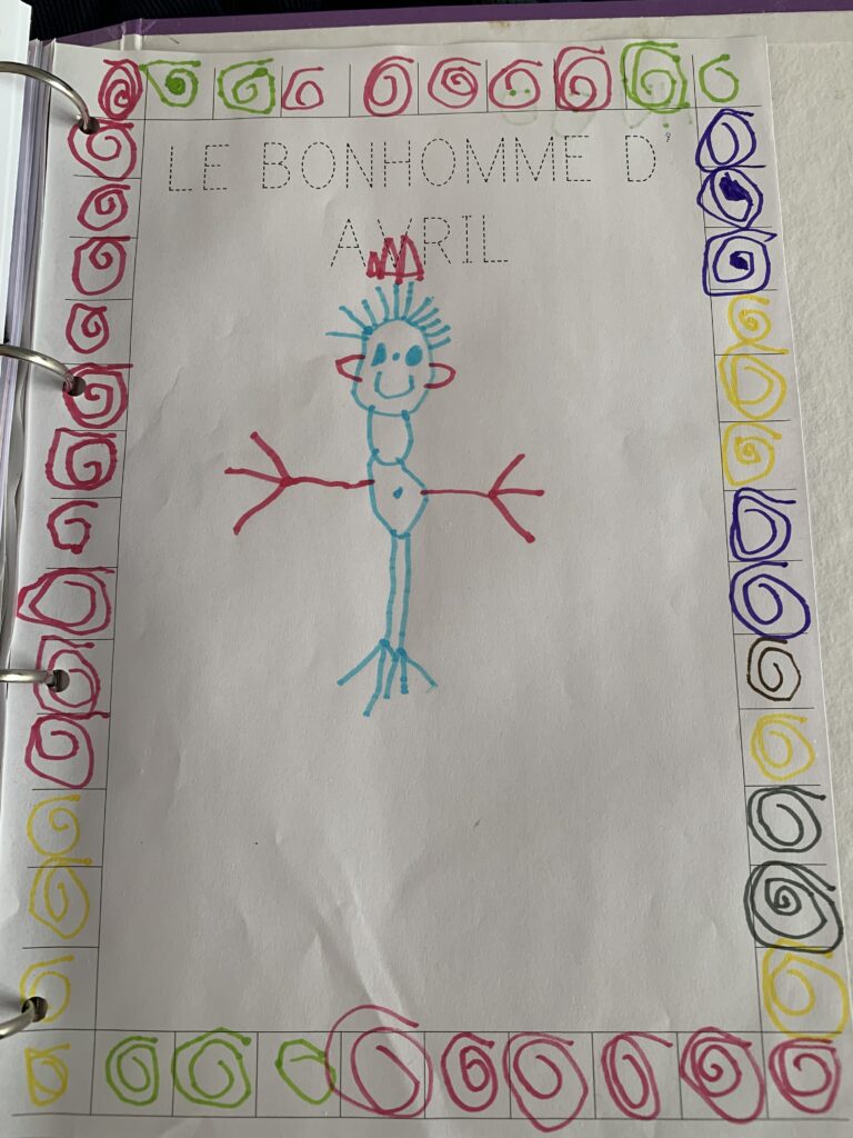 Chaque mois, les garçons dessinent un bonhomme à l’école, que la maîtresse ajoute dans leur classeur au fur et à mesure. Ils font ça de la petite section à la grande section pour voir l’évolution. Je trouve ça trop mignon et trop drôle à la fois.