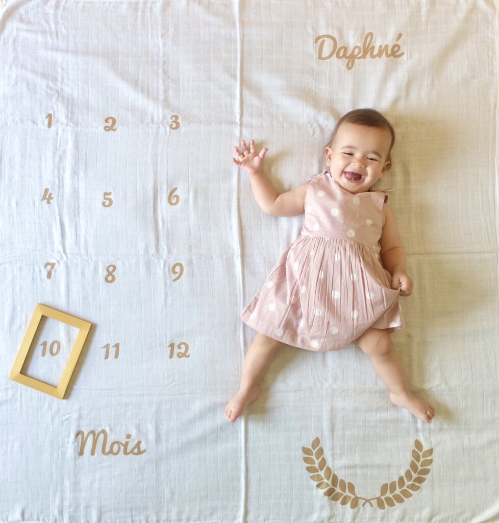 Beaucoup de changement récemment pour Daphné. Pour commencer, dans la nuit du 20 au 21 avril, elle a fait sa première nuit complète !! Couchée vers 19h15 comme tous les soirs et réveillée seulement à 7h15 : un miracle. En plus, je l’ai recouchée après l’avoir allaitée et elle a continué à dormir jusque vers 9h. Malheureusement, elle ne m’a plus refait de nuit comme ça et depuis elle est repartie sur 2 réveils… fausse joie !