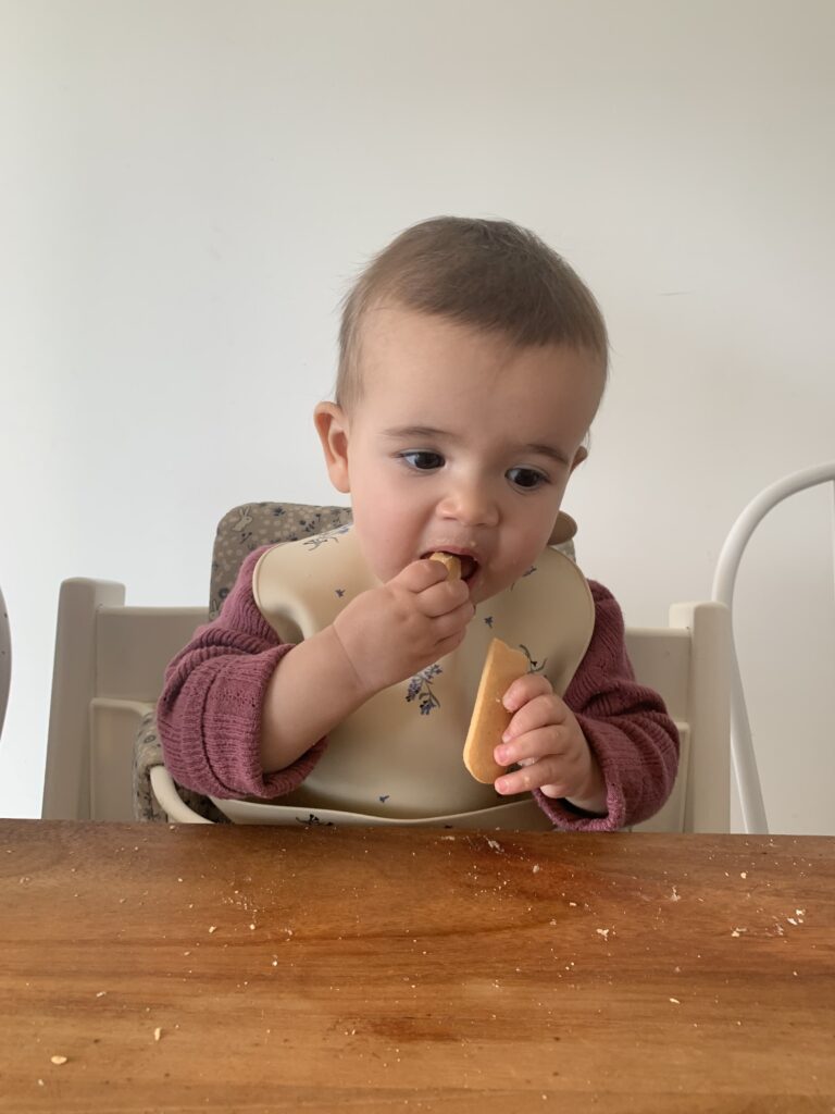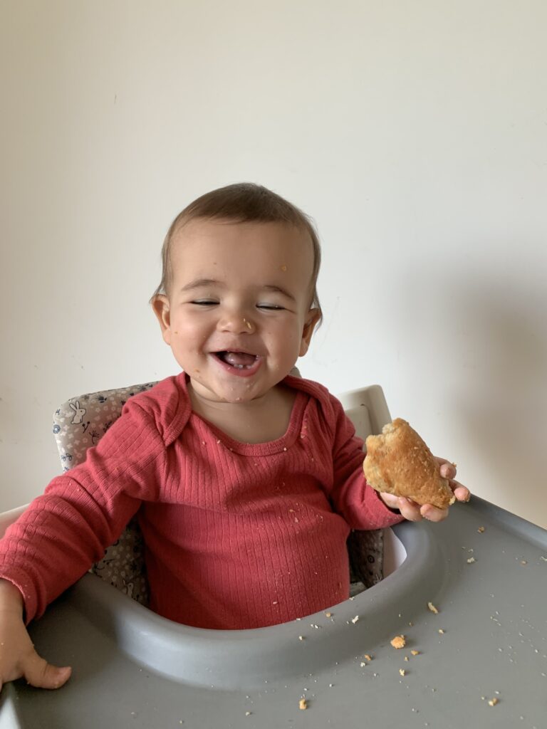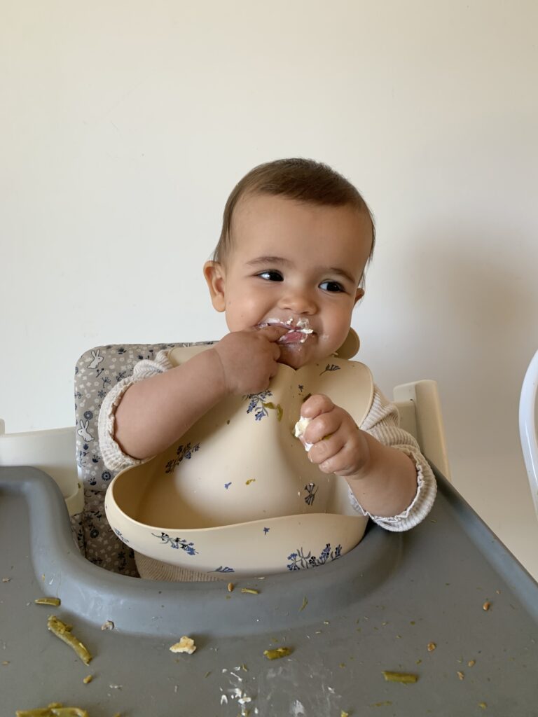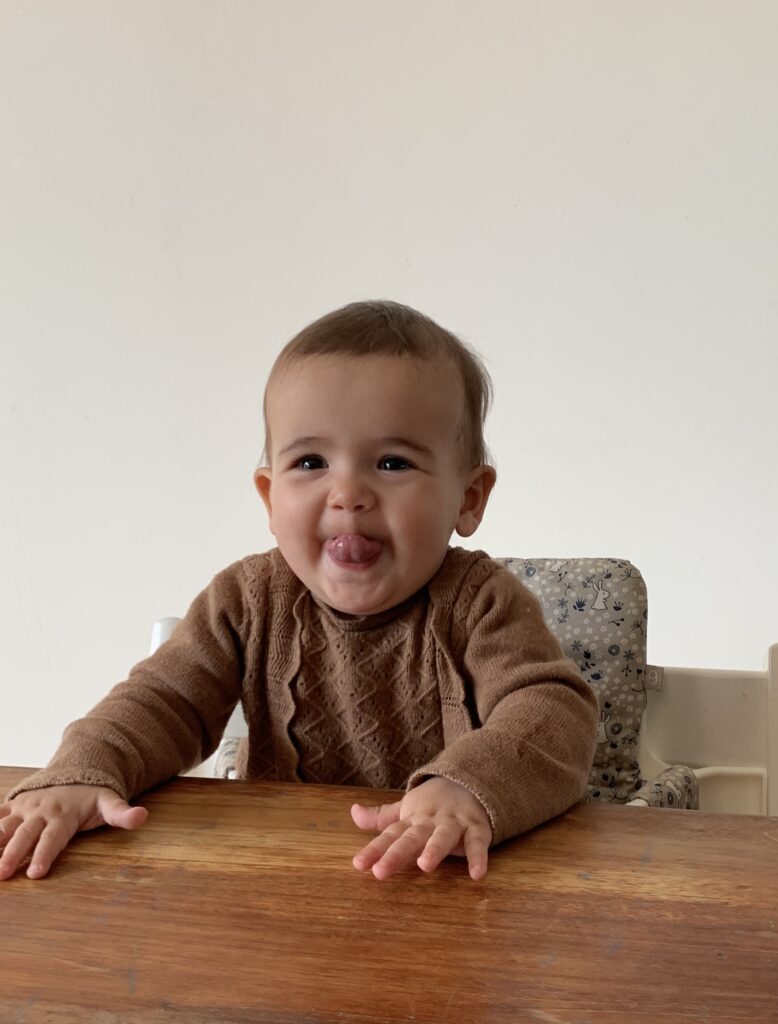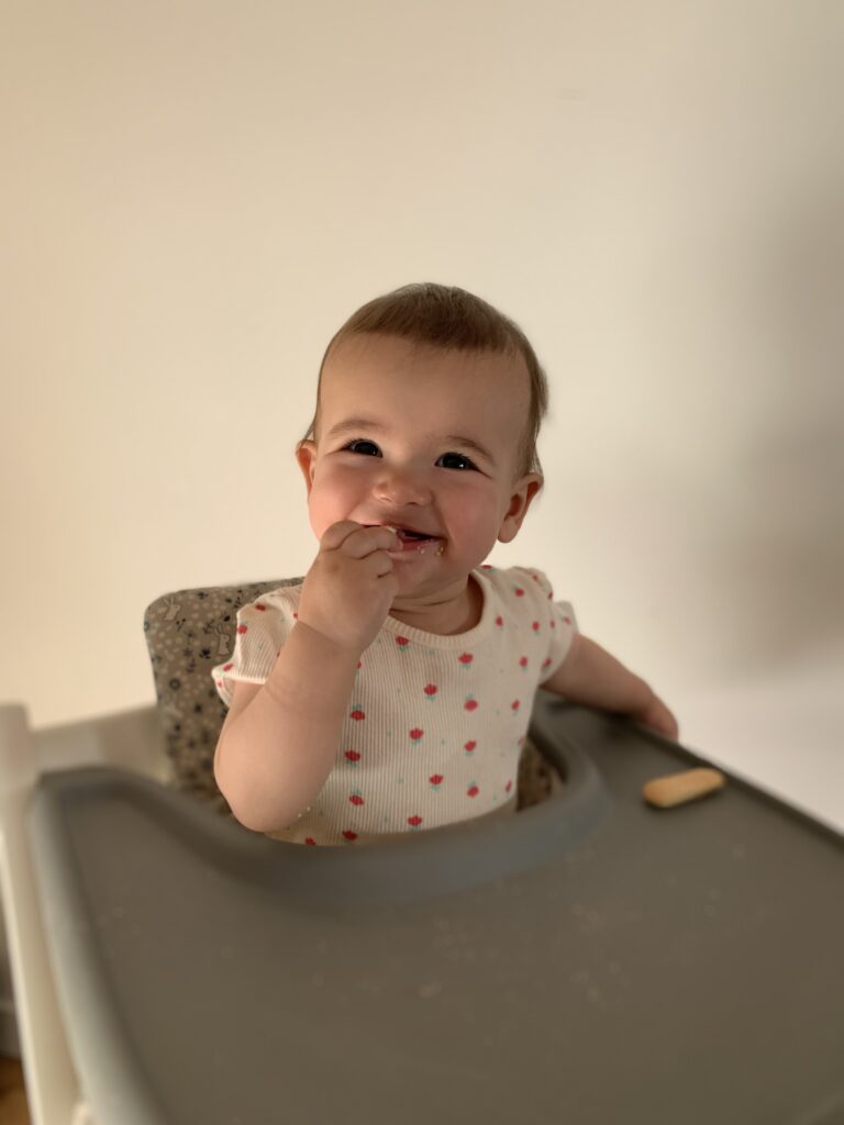 En tout cas, c’est un bonheur de la voir franchir toutes ces étapes, et je suis contente qu’elle mange enfin même si je ne m’inquiétais pas vraiment. Elle s’en met partout et ne semble plus dégoûtée, un cap a été franchi 🙂 Elle avait juste besoin d’un peu plus de temps.