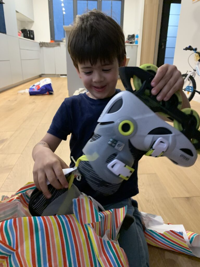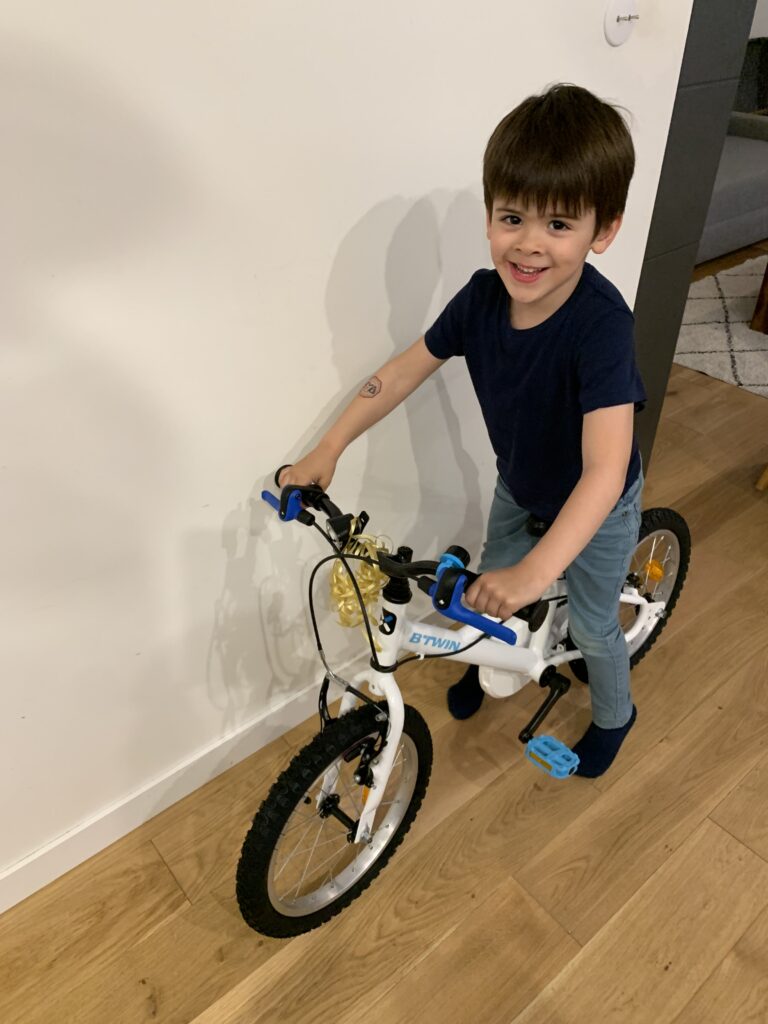 Il a été très gâté avec un nouveau vélo, des rollers, des puzzles et livres…