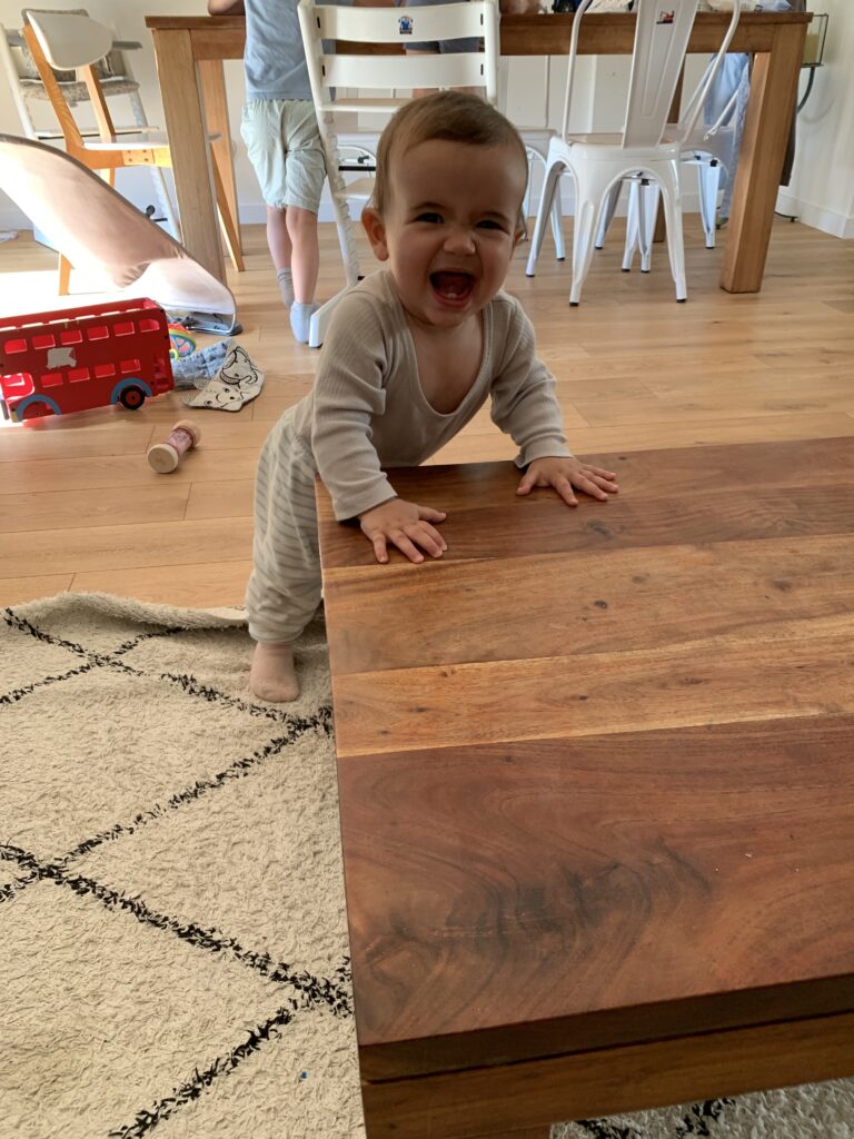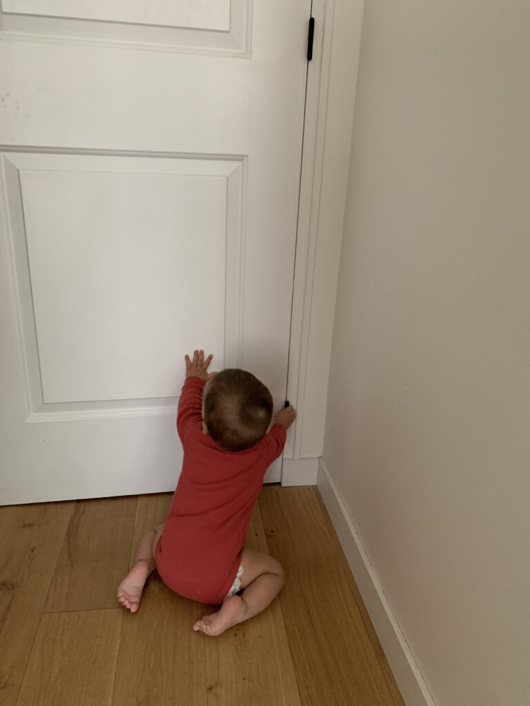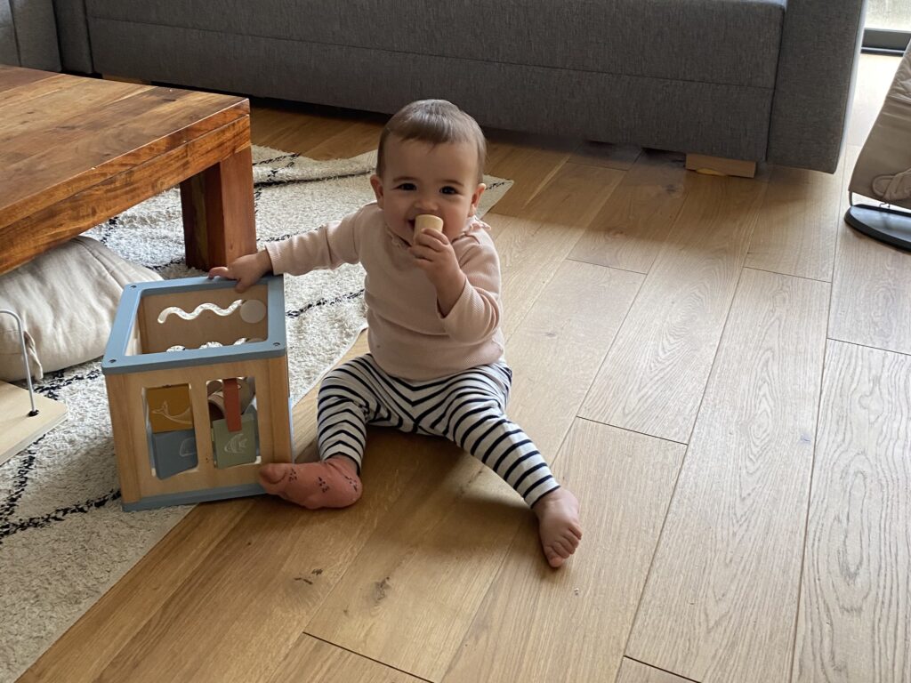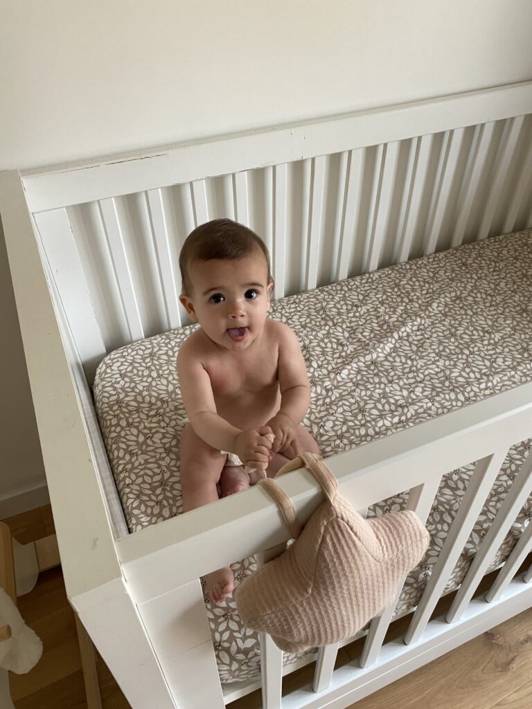 En général, elle m’appelle quand ça ne va pas, quand elle a faim ou qu’elle en a marre de faire du quatre pattes et qu’elle veut grimper sur moi. Car oui elle fait aussi du quatre pattes depuis 3 semaines !