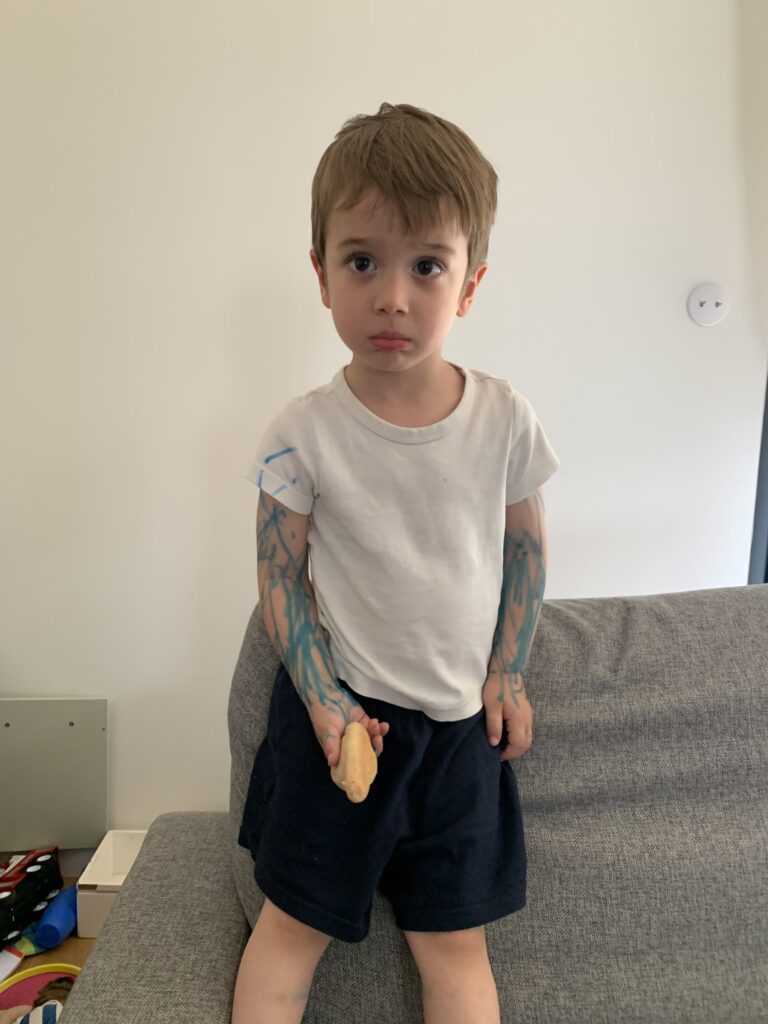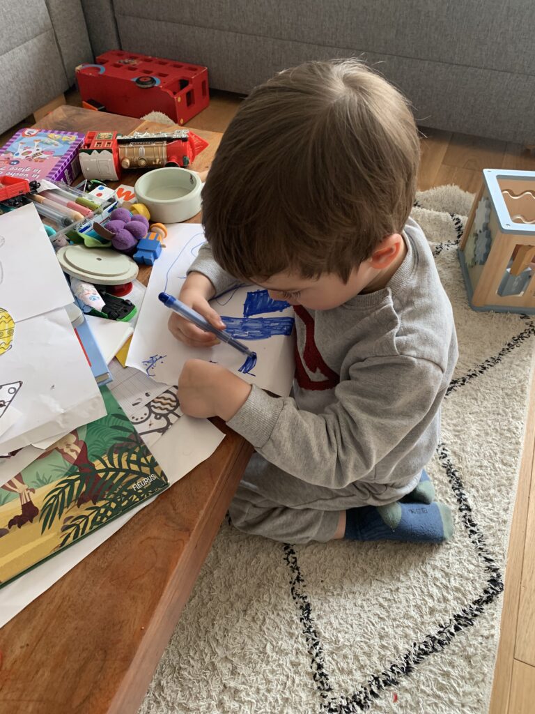 Cette première année d’école aura été un immense chamboulement pour lui et j’espère qu’il sera plus serein à la rentrée prochaine chez les moyens. Deux ans et demi pour démarrer l’école, ce n’est pas simple pour tout le monde ! Notre petit Armand est ultra sensible et a énormément besoin d’être rassuré. Il est aussi surprenant et créatif… comme un enfant de trois ans et demi !