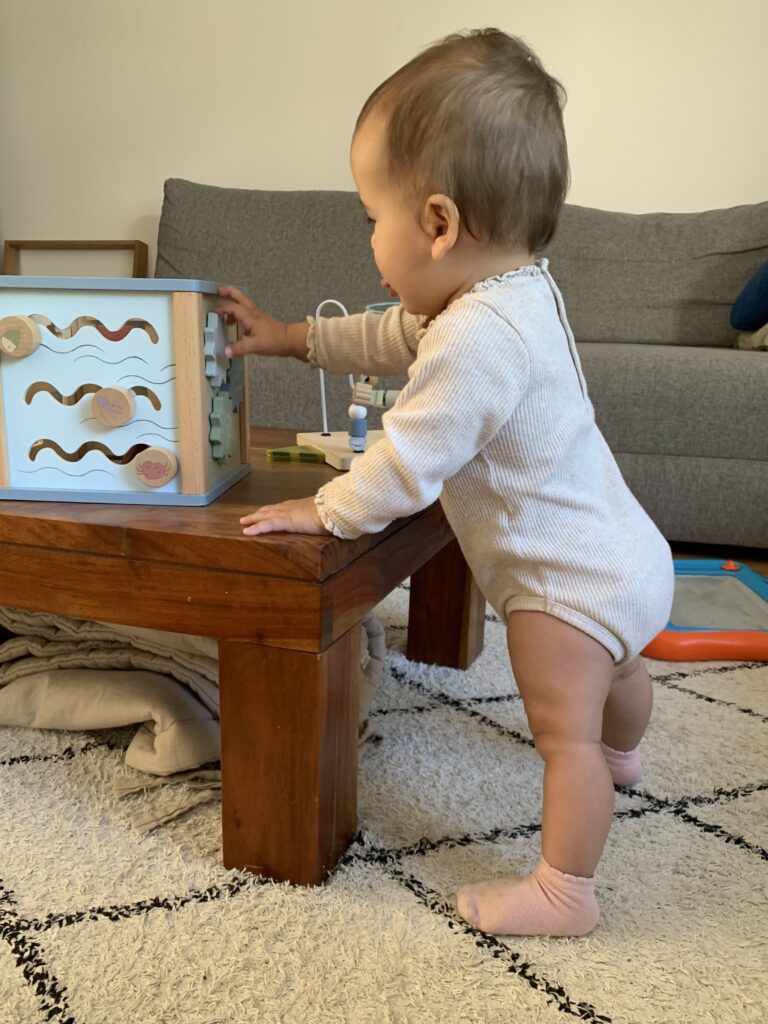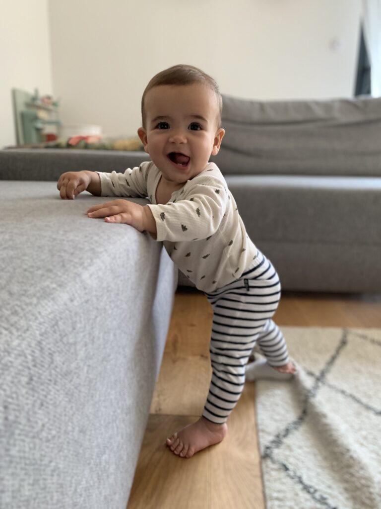 Elle se déplace absolument partout, met tout à la bouche et se relève tout le temps.
