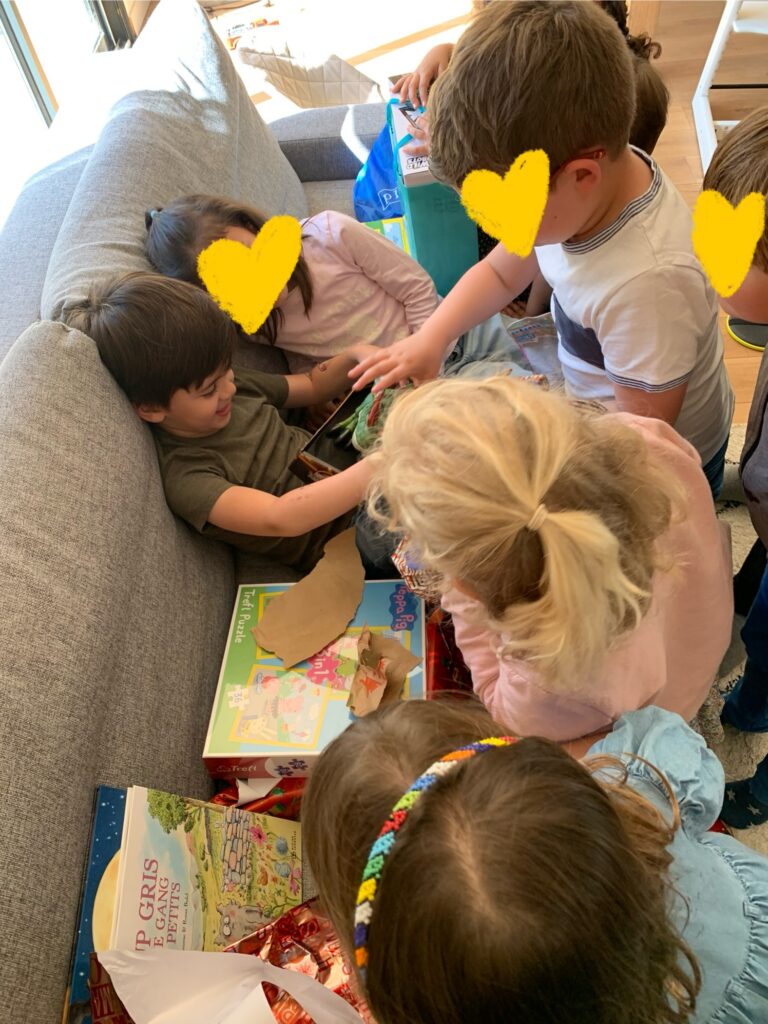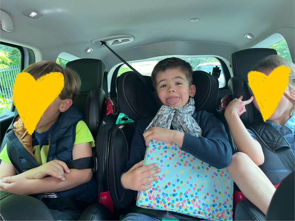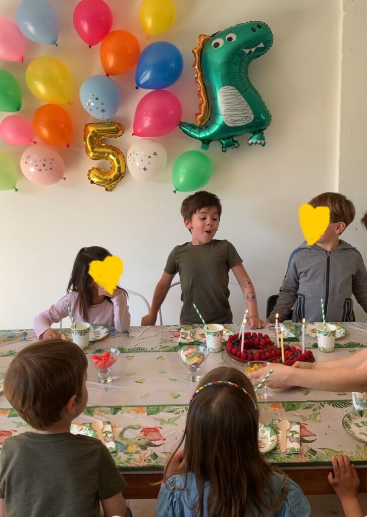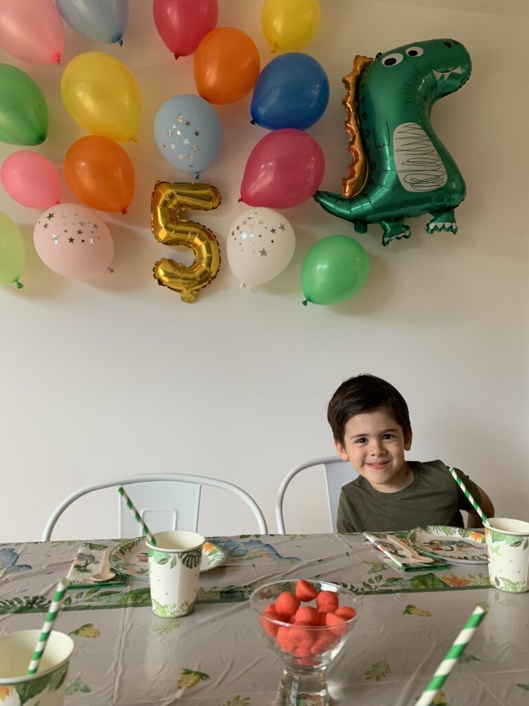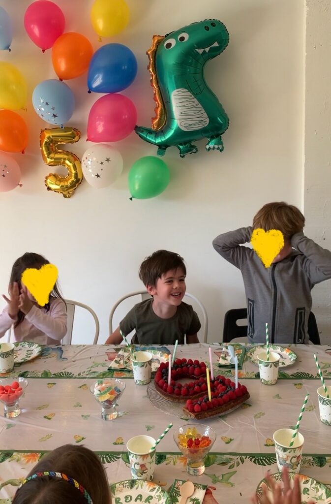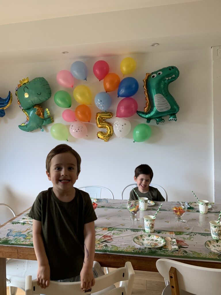 Il était aux anges avec ses copains de classe et plein de cadeaux autour des dinosaures et de Peppa Pig 🙂